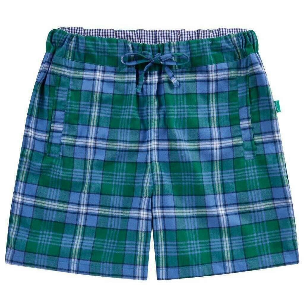 These green sea turtle long shorts for men or women are fashioned by the brand Loungers in a green colour and are made from 100% organic cotton. Also the green/blue/white lounge shorts are designed in a striped pattern, It is recommended to wash on a 30 degree cotton cycle to keep these lounge shorts in good condition. All the lounge shorts come complete with loungers packaging. The Loungers Green Sea Turtle Long Shorts - Green/Blue/White are made from 100% organic brushed cotton, ensuring eco-friendly production. Sitting just above the knee, these long shorts boast a deep side pocket and a back pocket featuring the iconic Corozo button. The breathable fabric ensures comfort, making these long shorts suitable for both lounging at home and casual outings.