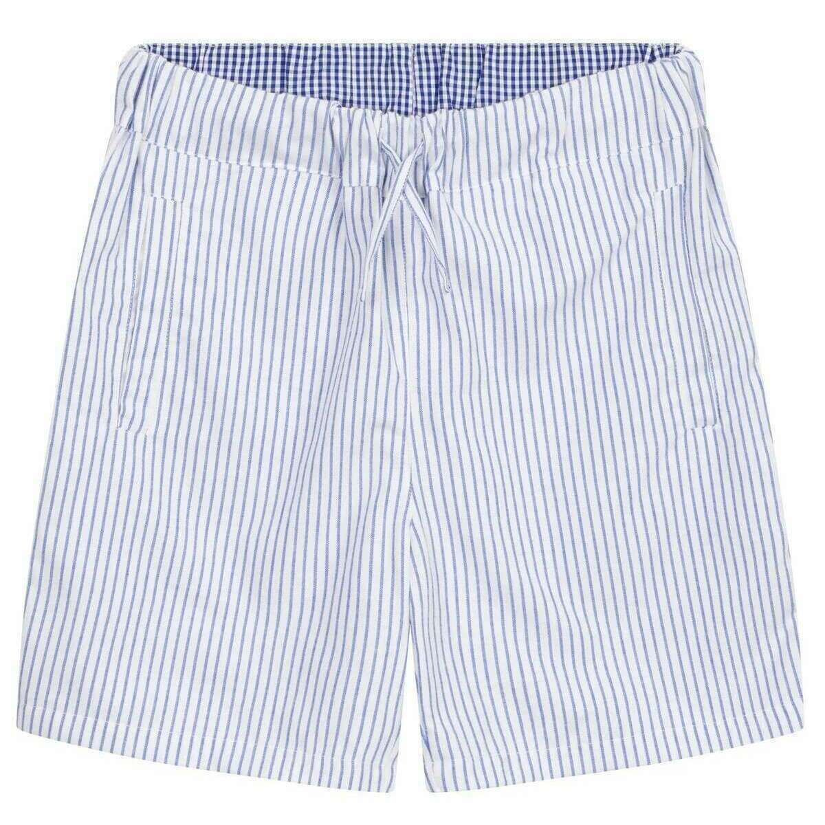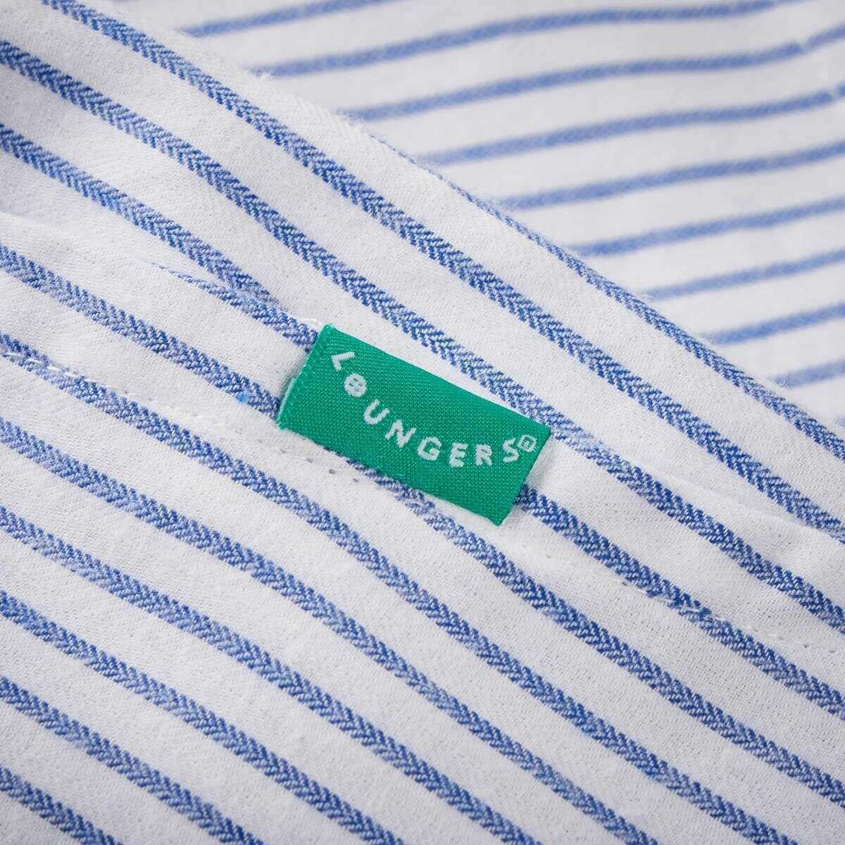These unisex monk seal long shorts by the brand Loungers are made from 100% organic cotton and are showcased in blue. Also the blue/white lounge shorts are designed in a striped pattern, It is recommended to wash on a 30 degree cotton cycle to keep these lounge shorts in good condition. All the lounge shorts come complete with loungers packaging. The Loungers Monk Seal Long Shorts - Blue/White are a stylish and sustainable addition to any wardrobe, combining comfort with a commitment to environmental responsibility. Crafted from soft organic cotton, these shorts offer a relaxed fit that can be worn both high and mid-rise, catering to personal style preferences. The breathable fabric ensures comfort, making them suitable for both lounging at home and casual outings. Named in honour of the critically endangered Mediterranean monk seal, these shorts aim to raise awareness about wildlife conservation.