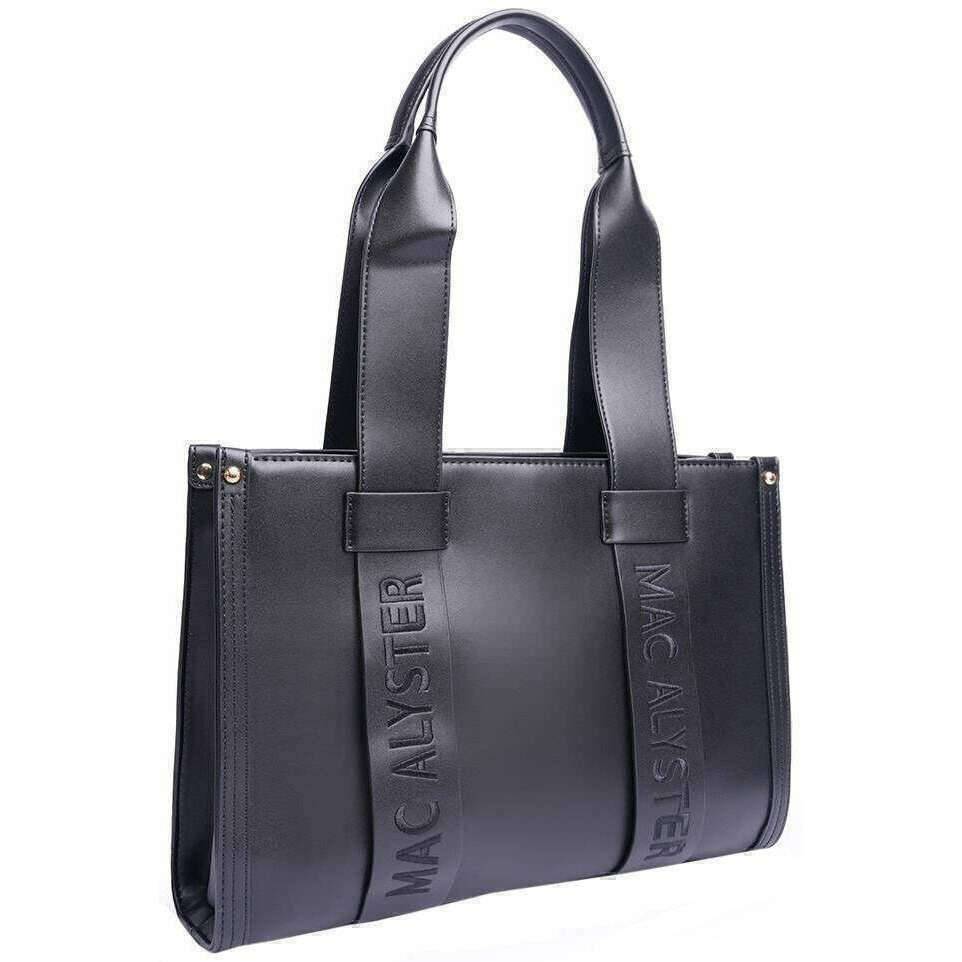 Introducing this women's basic clover cabas bag by Mac Alyster, it is manufactured from 100% synthetic material in a black colour. It measures 26cm(height) x 37cm(width) x 10cm(depth). All the bags come complete with mac alyster packaging. The Mac Alyster Basic Clover Cabas Bag - Black is a must-have if you are frequently on the go and need lots of storage for your essentials and more. The two comfortable shoulder straps allow for a hands-free wear and the studs on the base ensure when you do put your bag down it will be prevented from dirt transferring or damage from occurring. The multiple compartments and pockets allow for organisation if you need your bag to have order. Complete with large Mac Alyster branding.