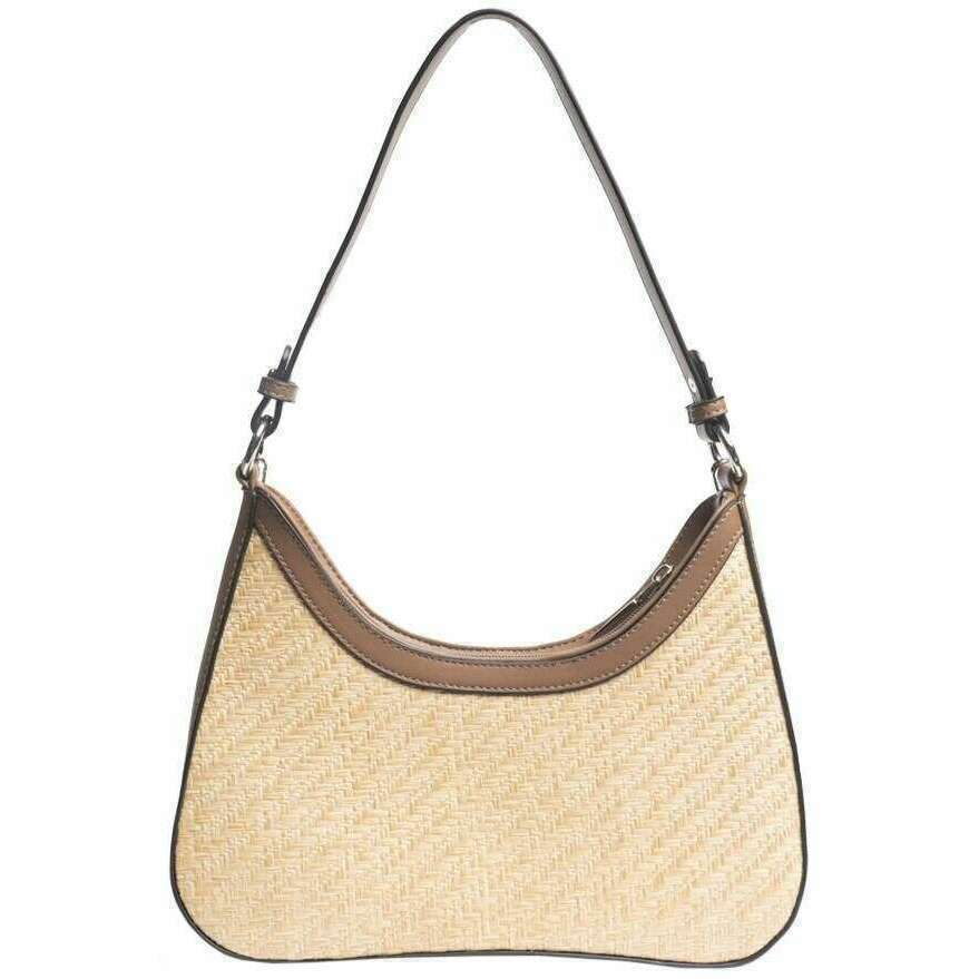 Perfect for women is this Mac Alyster taupe panama baguette bag, it is also made from 100% synthetic material. It measures 19cm(height) x 27cm(width) x 7cm(depth). All the bags come complete with mac alyster packaging. The Mac Alyster Panama Baguette Bag - Taupe features three different straps which enables you to switch this bag from day to night with a small change that will match perfectly with any attire. The zipper closure ensures a secure wear and the interior pockets offer great organisation for smaller items. Complete with gold metal hardware that offers a luxurious touch and Mac Alyster branding.