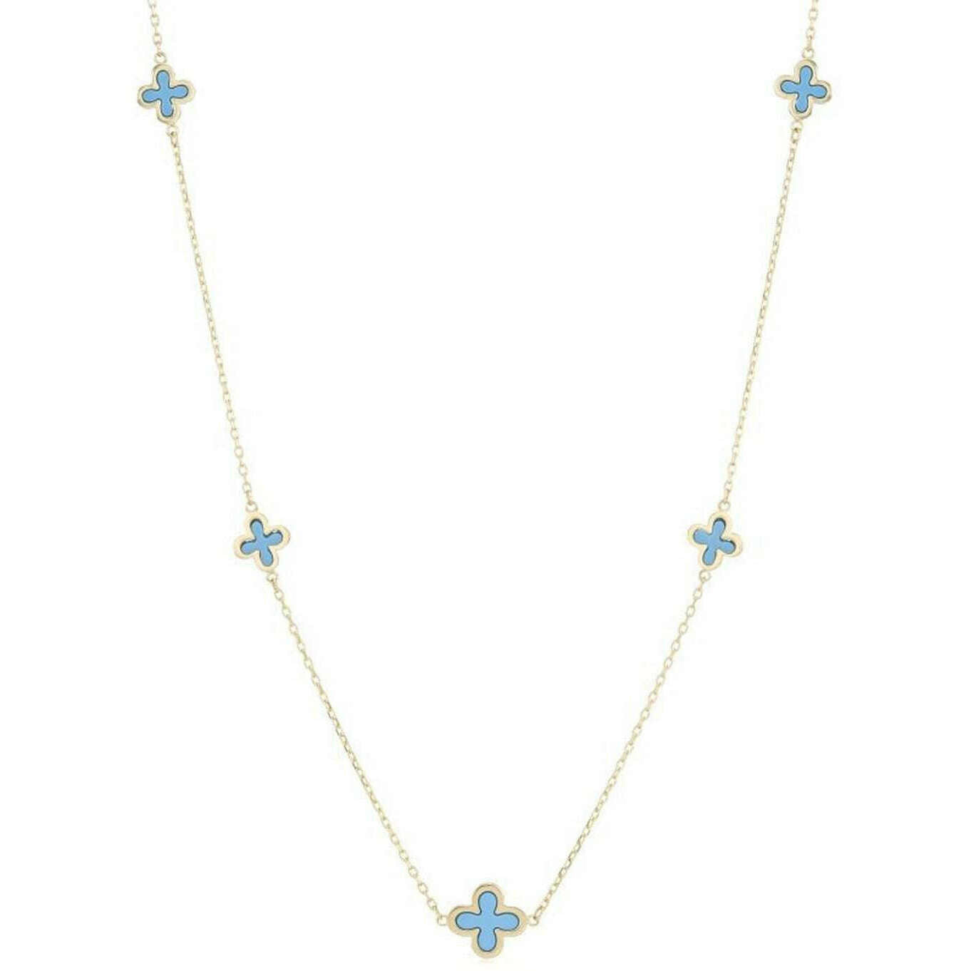 Mark Milton Five Flower Necklace - Yellow Gold/Turquoise Blue