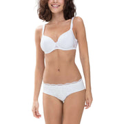 Perfect for women is this Mey white amazing hipster briefs, it is also made from 78% polyamide and 22% elastane. Also the white underwear is designed in a plain pattern, It is recommended to machine wash at 30 degrees to keep this underwear in good condition. All the underwear comes complete with mey packaging. The Mey Amazing Hipster Briefs - White are a must-have if you are looking for a basic with a gorgeous touch for a feminine feel. This pair has a deep mid-rise, a cotton insert on the gusset, seamless legs and a narrow waistband which all contribute to giving optimal comfort for an everyday wear. The lace front and waistband give an elegant flair.