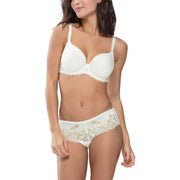 Designer Mey has brought you this women's 87% polyamide and 13% elastane underwear using champagne cream tones. Also the champagne cream underwear is designed in a plain pattern, It is recommended to machine wash at 30 degrees to keep this underwear in good condition. All the underwear comes complete with mey packaging. The Mey Luxurious Hipster Briefs - Champagne Cream are a must-have if you are looking for a basic with a gorgeous touch for a feminine feel. This pair has a mid rise fit, a cotton insert on the gusset, seamless legs and a flat waistband which all contribute to giving optimal comfort for an everyday wear. The all over lace gives an elegant sexy flair.