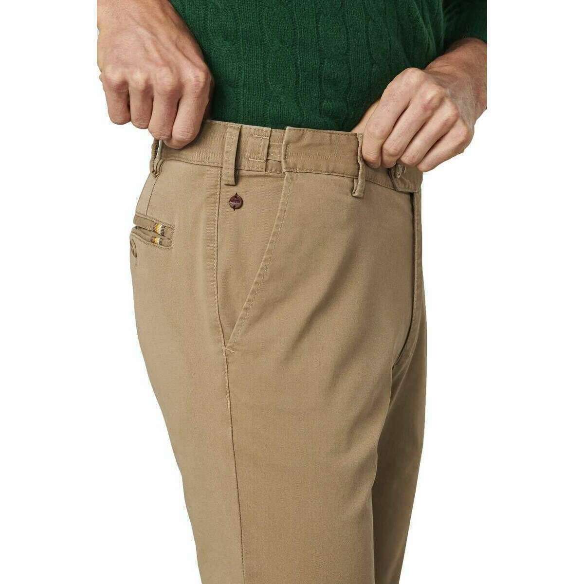 Designer Meyer have brought you these men's 98% organic cotton and 2% elastane trousers using camel beige tones. Also the camel beige trousers are designed in a plain pattern, All the trousers come complete with meyer tags. The Meyer Oslo Flex Chinos - Camel Beige are ideal for travelling as they feature a specially designed waistband which is extra flexible, with up to 8cm more width, hidden but noticeable comfort. The organic cotton is beautifully soft against your skin and naturally breathable as well as sustainable. With no pleat and a modern fit, they will keep you comfortable and stylish throughout the day. Featuring a waistband hook with securing button, zip safety, rounded French pockets with additional coin pocket, hidden security pocket and back buttoned pockets, they are a functional pair.