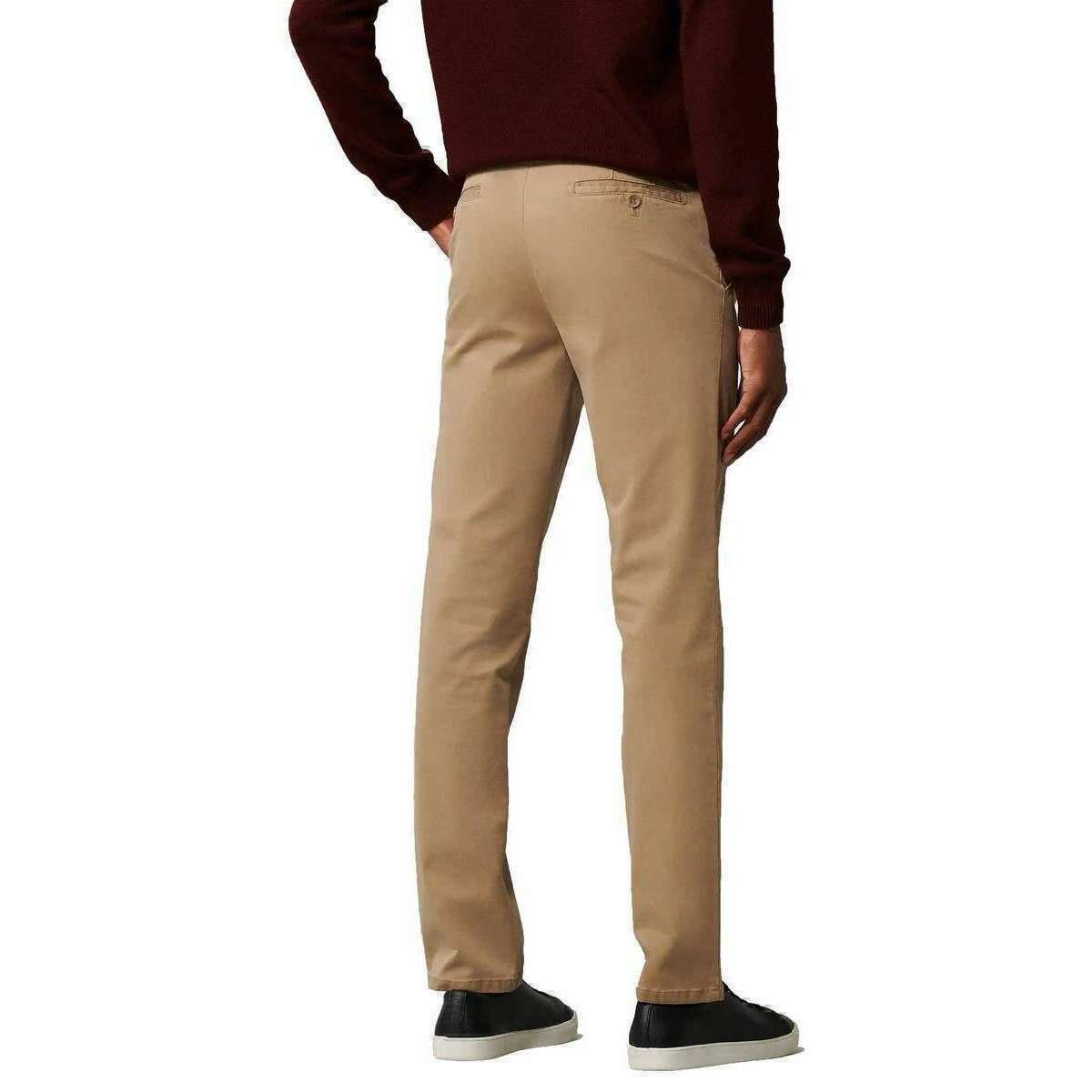 Manufactured from 98% organic cotton and 2% elastane are these camel beige men's roma regular chinos by the designer Meyer. Also the camel beige trousers are designed in a plain pattern, All the trousers come complete with meyer tags. The Meyer Roma Regular Chinos - Camel Beige promise a slender silhouette without compromising on a comfortable fit as they have been expertly crafted from organic cotton, beautifully soft on the skin whilst remaining environmentally responsible. The flat-front style has a regular fit with an elasticated waistband, waistband hook with securing button, zip safety, rounded French pockets with additional coin pocket and buttoned back pockets so you can be sure there are plenty of ways to carry your necessities. The perfect pair of chinos for everyday wear, they also feature non-fade, colourfast and a high quality interior design with colourful woven pocket patches.