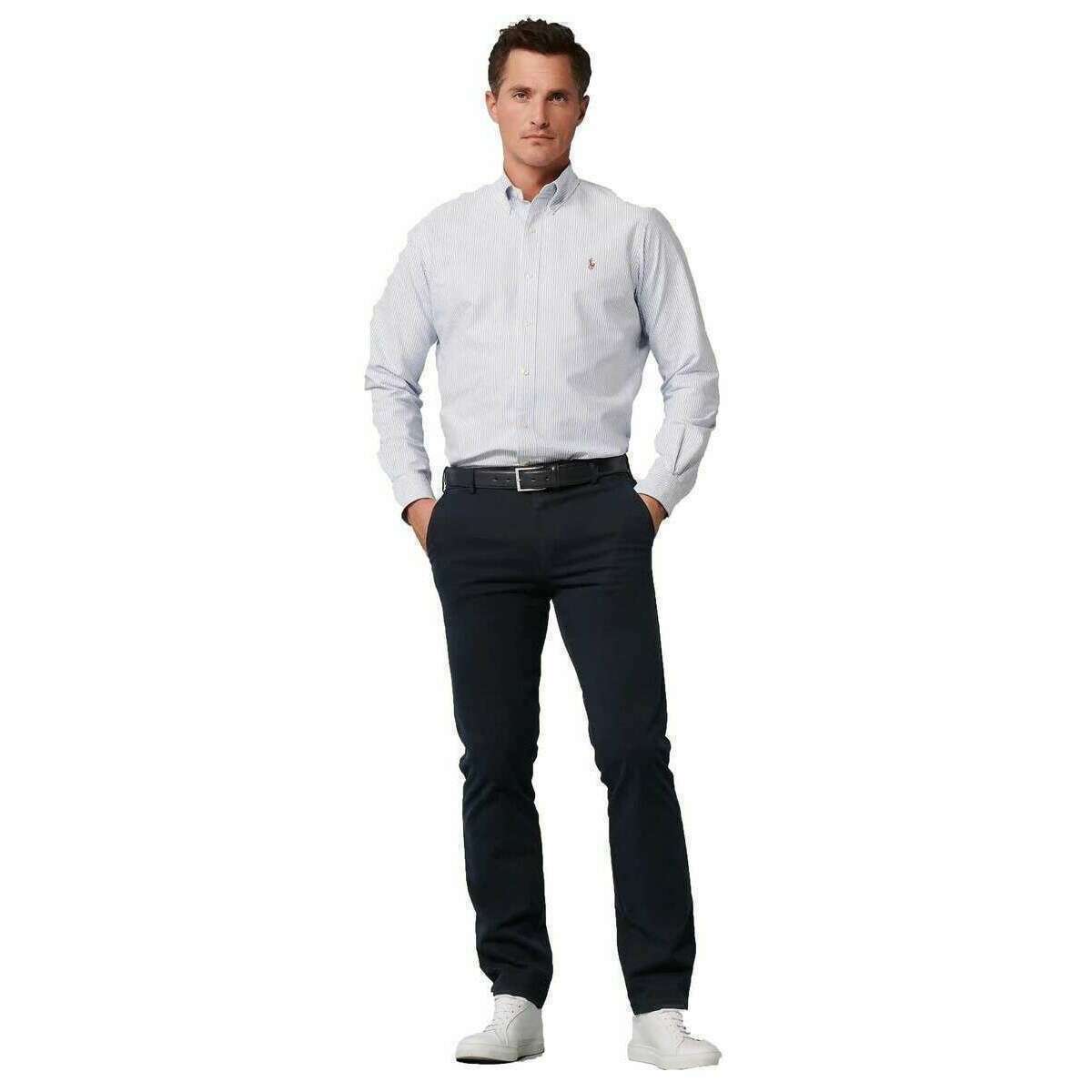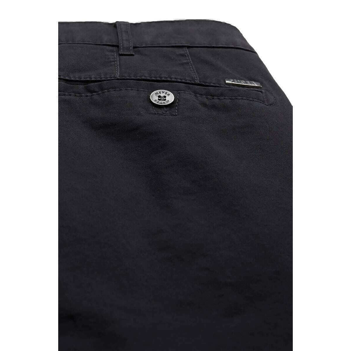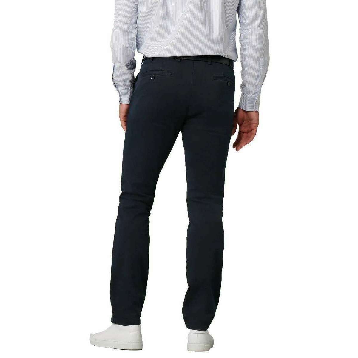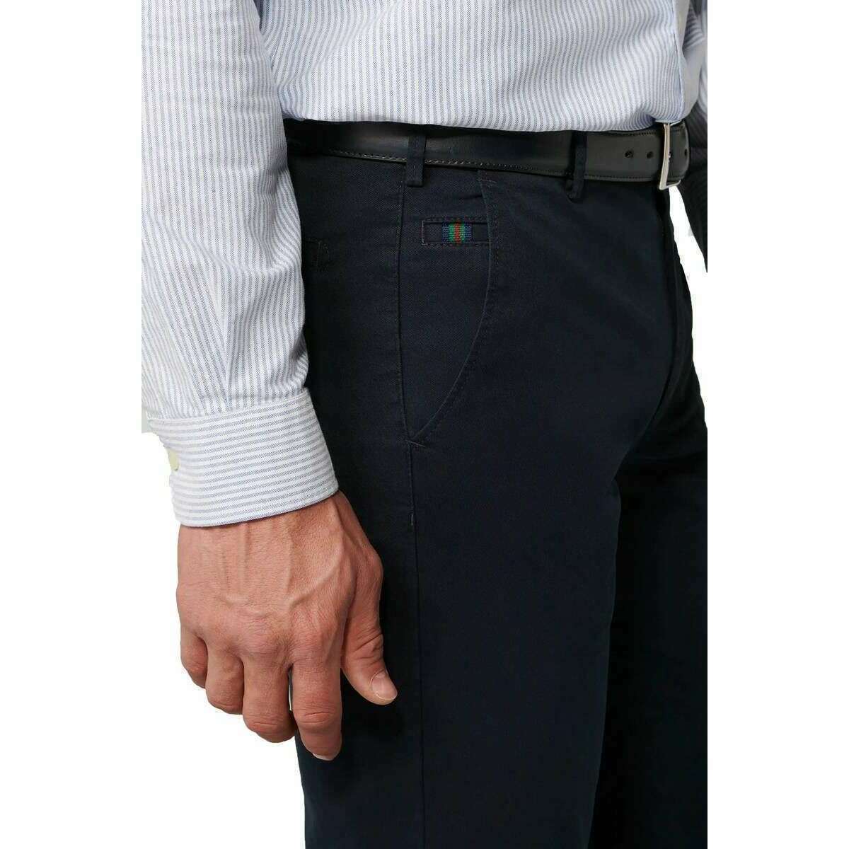 Brought to you by the brand Meyer, these navy men's roma regular chinos are made from 98% organic cotton and 2% elastane. Also the navy trousers are designed in a plain pattern, All the trousers come complete with meyer tags. The Meyer Roma Regular Chinos - Navy promise a slender silhouette without compromising on a comfortable fit as they have been expertly crafted from organic cotton, beautifully soft on the skin whilst remaining environmentally responsible. The flat-front style has a regular fit with an elasticated waistband, waistband hook with securing button, zip safety, rounded French pockets with additional coin pocket and buttoned back pockets so you can be sure there are plenty of ways to carry your necessities. The perfect pair of chinos for everyday wear, they also feature non-fade, colourfast and a high quality interior design with colourful woven pocket patches.