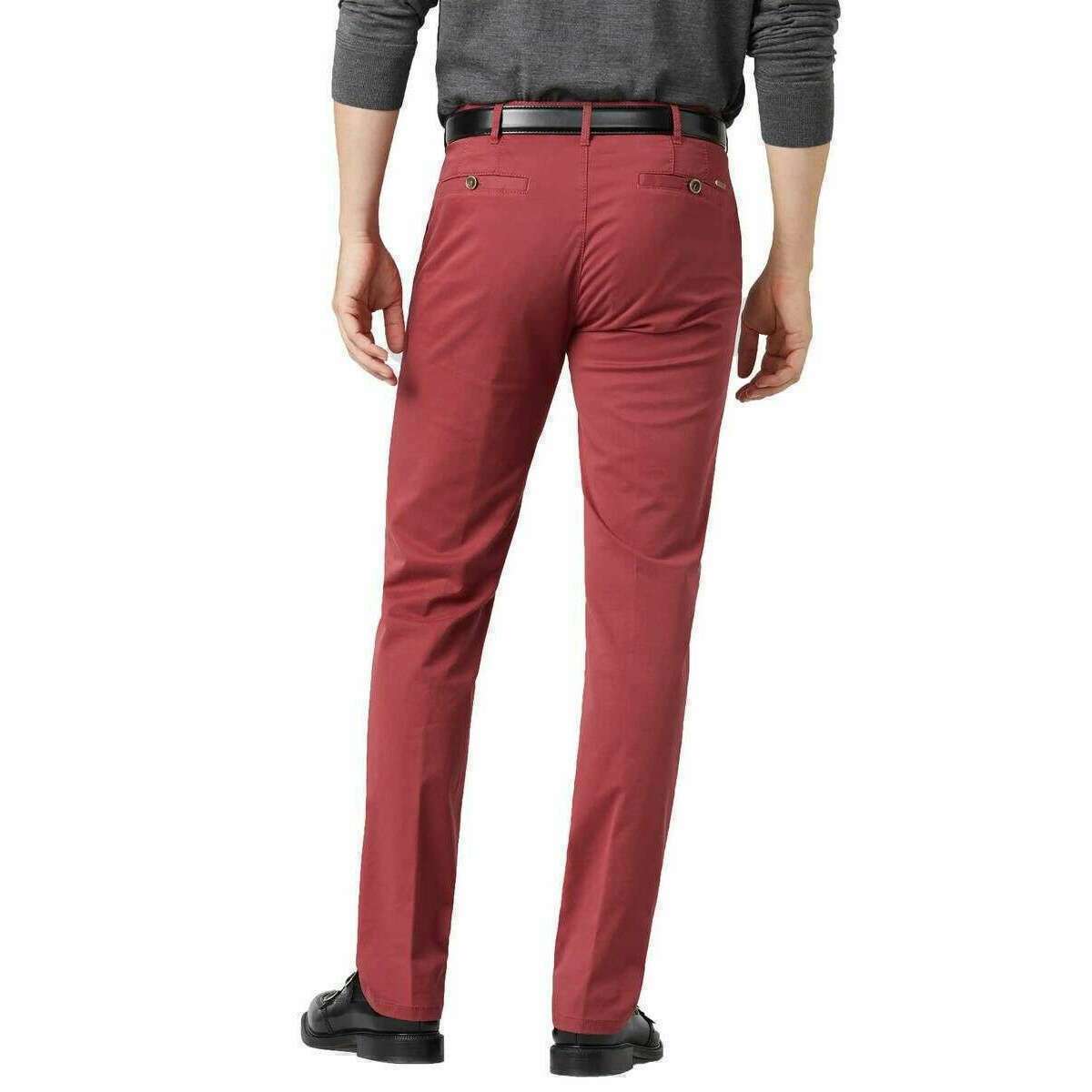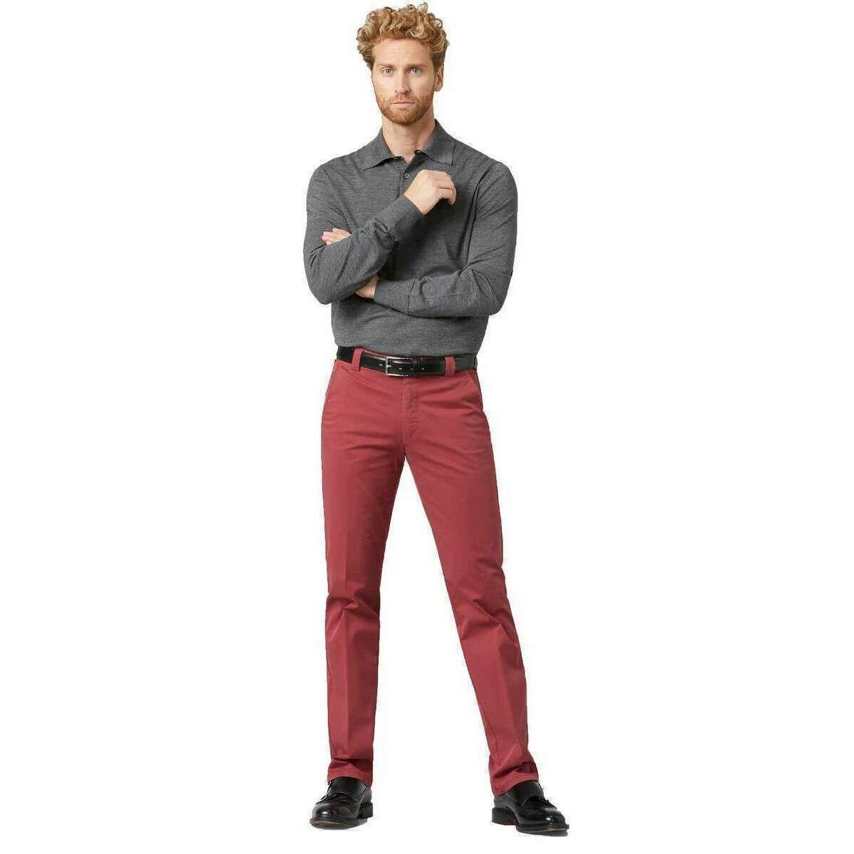 Perfect for men are these Meyer red roma regular fair chinos, they are also made from 97% fair trade cotton and 3% elastane. Also the red trousers are designed in a plain pattern, All the trousers come complete with meyer tags. The Meyer Roma Regular Fair Chinos - Red consist exclusively of Fairtrade-certified cotton making them the perfect, responsible pair of chinos. The comfortable fit, special contoured waistband, and two-way stretch fabric ensures incomparable comfort, ideal for everyday wear. Featuring rounded French pockets, additional coin pocket, zip safety and buttoned back pockets, they are practical as well as stylish. Lightfast and colourfast, these chinos have maximum protection from fading and with an elegant interior finish and sophisticated details, these trousers will enhance any outfit.