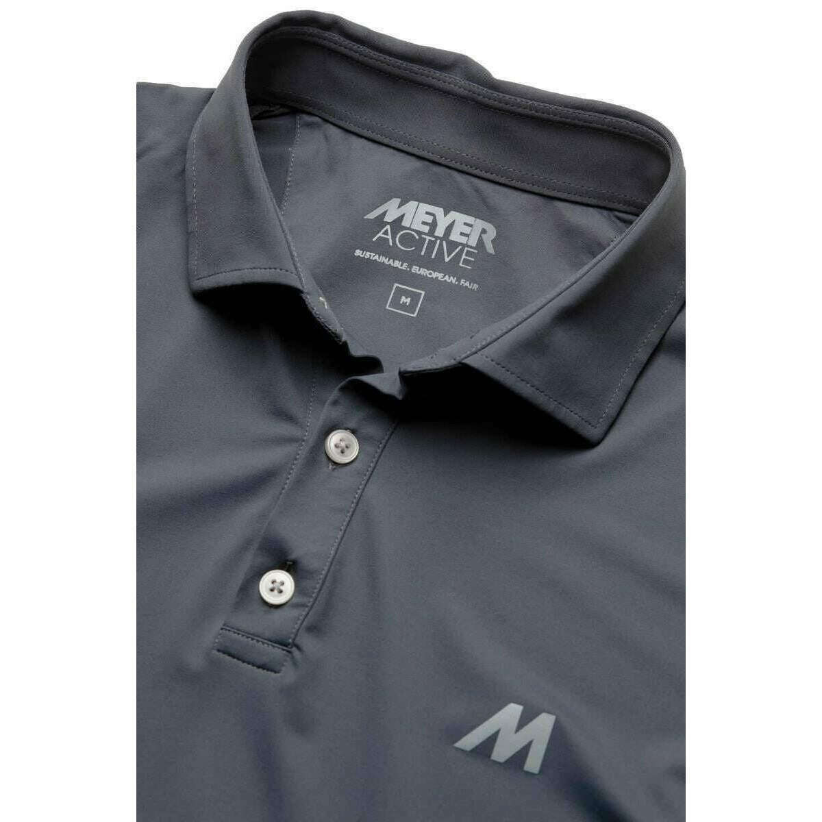 Manufactured from 90% polyester and 10% elastane is this charcoal grey men's tiger performance polo by the designer Meyer. Also the charcoal grey polo shirt is designed in a plain pattern, It is recommended to wash at 40 degrees to keep this polo shirt in good condition. All the polo shirts come complete with meyer tags. The Meyer Tiger Performance Polo - Charcoal Grey has been beautifully made in Italy by Jersey Lomellina from a high-quality technical fabric with recycled fibres. The stunning material is breathable, quick-drying, sun cream resistant, retains its shape and has UV protection, so you can be sure to be well protected on your active days. The slim silhouette has the ‘perfect fit’ and is complete with a 3-button collar.