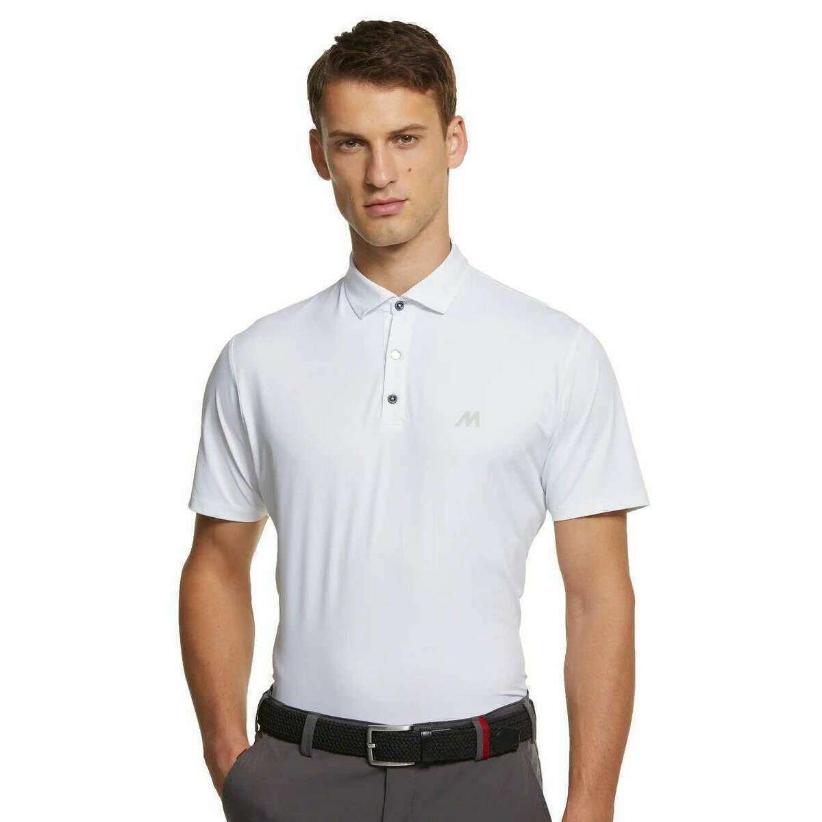 Manufactured from 90% polyester and 10% elastane is this white men's tiger performance polo by the designer Meyer. Also the white polo shirt is designed in a plain pattern, It is recommended to wash at 40 degrees to keep this polo shirt in good condition. All the polo shirts come complete with meyer tags. The Meyer Tiger Performance Polo - White has been beautifully made in Italy by Jersey Lomellina from a high-quality technical fabric with recycled fibres. The stunning material is breathable, quick-drying, sun cream resistant, retains its shape and has UV protection, so you can be sure to be well protected on your active days. The slim silhouette has the ‘perfect fit’ and is complete with a 3-button collar.