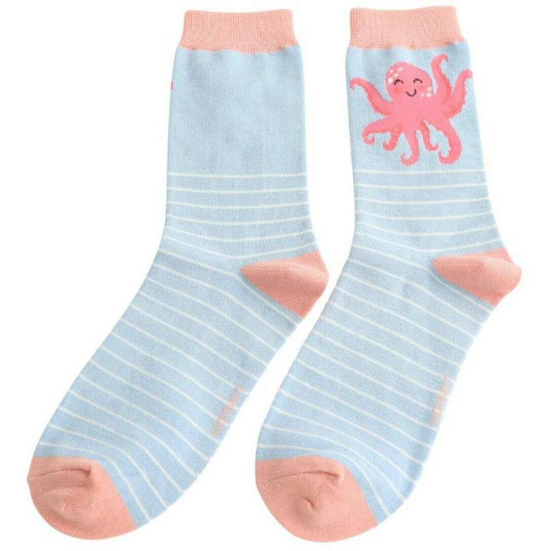 Miss Sparrow London Pink Octopus Bamboo Socks - Powder Blue