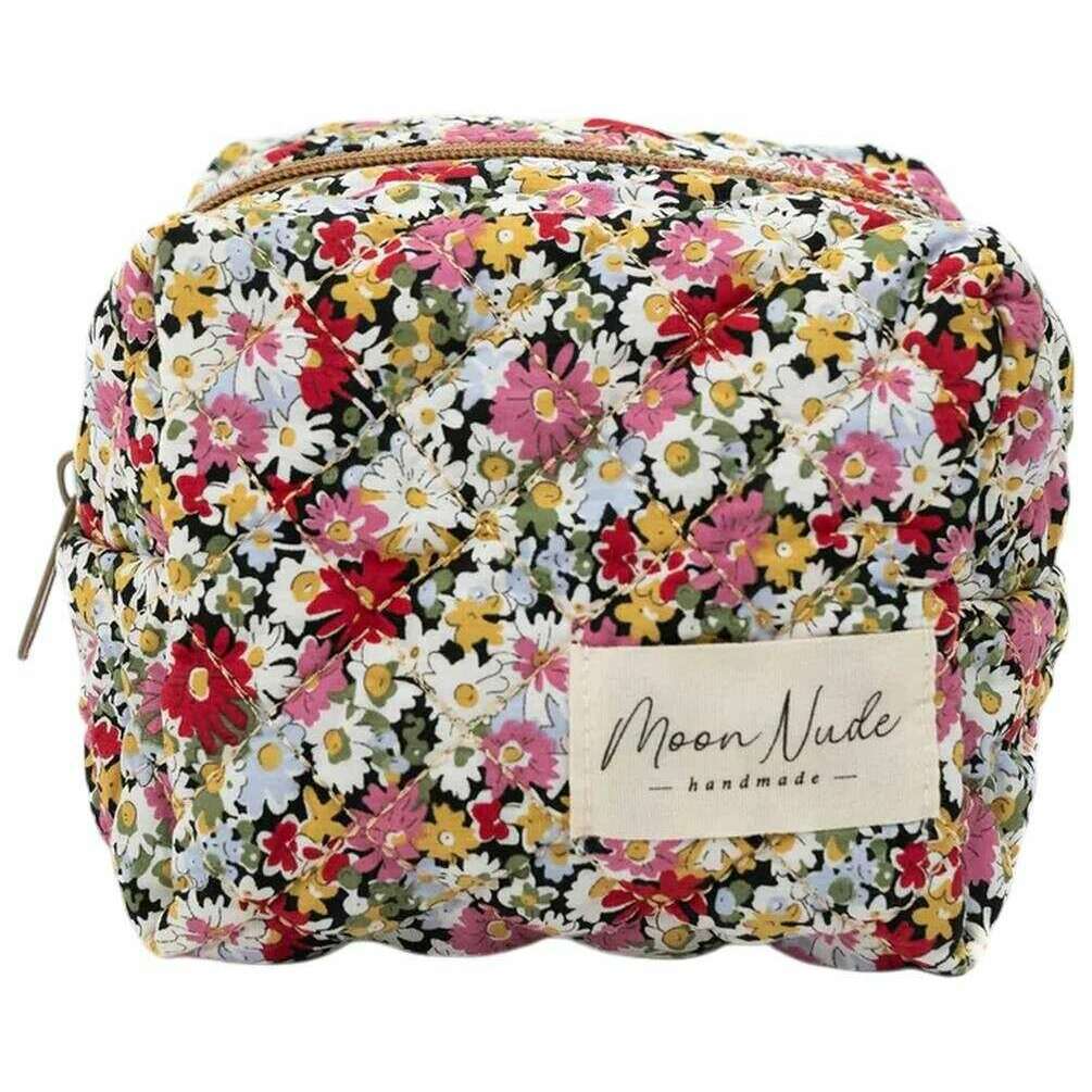 This autumn mini makeup bag for women is fashioned by the brand Moon Nude in a red colour and is made from 100% cotton. It measures 13cm(height) x 15cm(width) x 11cm(depth). It is recommended to wash by hand in cold water with a mild detergent, or maching wash inside out on a delicate cycle. to keep this bag in good condition. All the bags come complete with moon nude packaging. The Moon Nude Autumn Mini Makeup Bag - Red/White/Pink is an absolute necessity for your room or everyday bag. This makeup bag is guaranteed to keep all your most used products together and safe, whilst also being stylish and chic with its handmade quilted design.