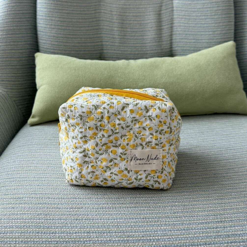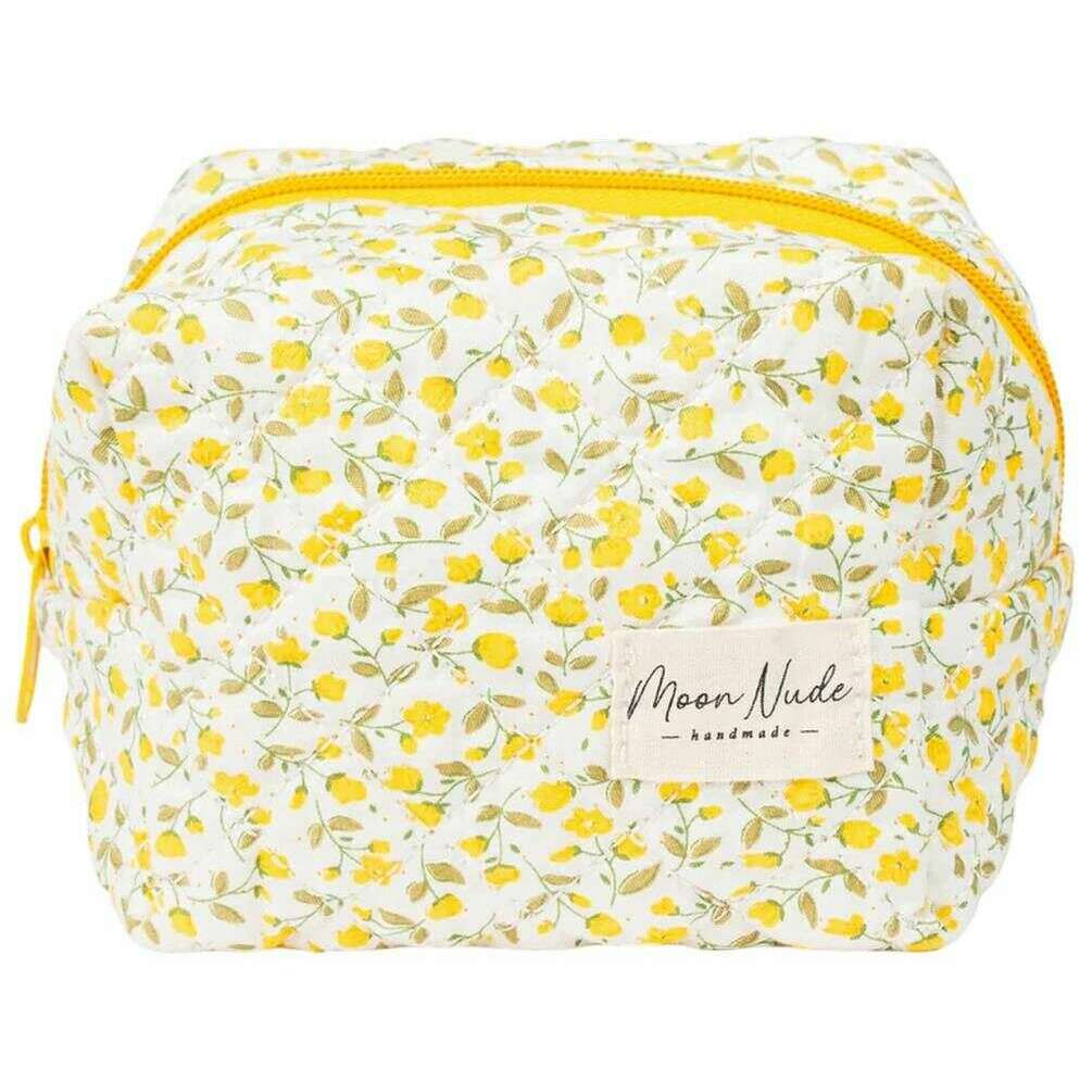 Manufactured from 100% cotton is this white/yellow/beige women's buttercup mini makeup bag by the designer Moon Nude. It measures 13cm(height) x 15cm(width) x 11cm(depth). It is recommended to wash by hand in cold water with a mild detergent, or maching wash inside out on a delicate cycle. to keep this bag in good condition. All the bags come complete with moon nude packaging. The Moon Nude Buttercup Mini Makeup Bag - White/Yellow/Beige is an absolute necessity for your room or everyday bag. This makeup bag is guaranteed to keep all your most used products together and safe, whilst also being stylish and chic with its handmade quilted design.