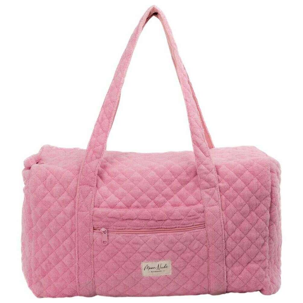 Brought to you by the brand Moon Nude, this pink women's candy large duffel bag is made from 100% cotton. It measures 30cm(height) x 50cm(width) x 28cm(depth). It is recommended to wash by hand in cold water with a mild detergent, or maching wash inside out on a delicate cycle. to keep this bag in good condition. All the bags come complete with moon nude packaging. The Moon Nude Candy Large Duffel Bag - Pink features a beautiful handmade quilted design. This bag features an exterior zip pocket, a spacious interior and two large handles, perfect for weekend getaways or carrying lots of belongings.
