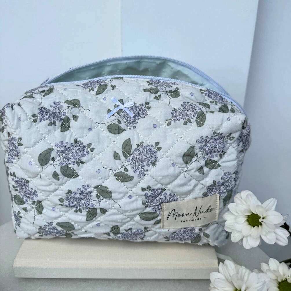 Designer Moon Nude has brought you this women's 100% cotton bag using white/grey tones. It measures 15cm(height) x 25cm(width) x 15cm(depth). It is recommended to wash by hand in cold water with a mild detergent, or maching wash inside out on a delicate cycle. to keep this bag in good condition. All the bags come complete with moon nude packaging. The Moon Nude Lilac Large Makeup Bag - White/Grey is an absolute necessity for your room or everyday bag. This makeup bag is guaranteed to keep all your most used products together and safe, whilst also being stylish and chic with its handmade quilted design.