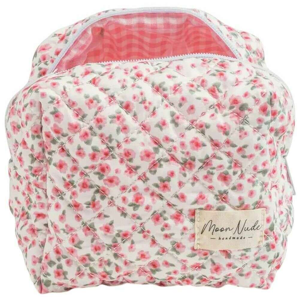 Using white 100% cotton, this peony mini makeup bag by Moon Nude is perfect for women and a must have. It measures 13cm(height) x 15cm(width) x 11cm(depth). It is recommended to wash by hand in cold water with a mild detergent, or maching wash inside out on a delicate cycle. to keep this bag in good condition. All the bags come complete with moon nude packaging. The Moon Nude Peony Mini Makeup Bag - White/Red/Green is an absolute necessity for your room or everyday bag. This makeup bag is guaranteed to keep all your most used products together and safe, whilst also being stylish and chic with its handmade quilted design.