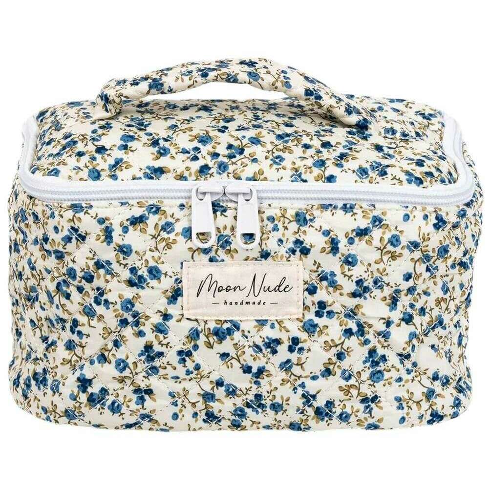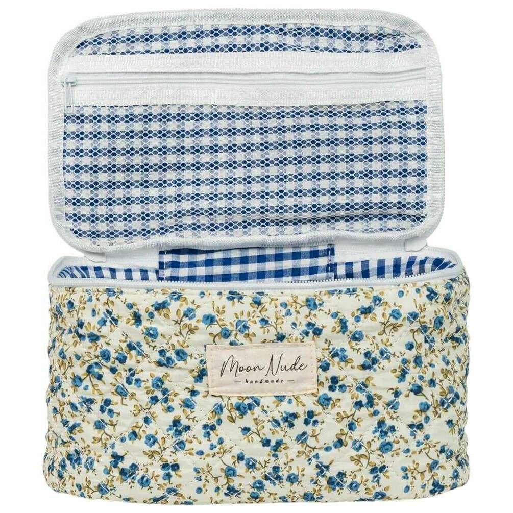 This well made women's spring vanity bag from Moon Nude comes in a white/blue/green colour and is manufactured from 100% cotton. It measures 16cm(height) x 22cm(width) x 14cm(depth). It is recommended to wash by hand in cold water with a mild detergent, or maching wash inside out on a delicate cycle. to keep this bag in good condition. All the bags come complete with moon nude packaging. The Moon Nude Spring Vanity Bag - White/Blue/Green is an absolute necessity for travelling or everyday use. This vanity bag is guaranteed to keep all your makeup or skin care in one place, whilst also being stylish and fashionable with its handmade quilted design.