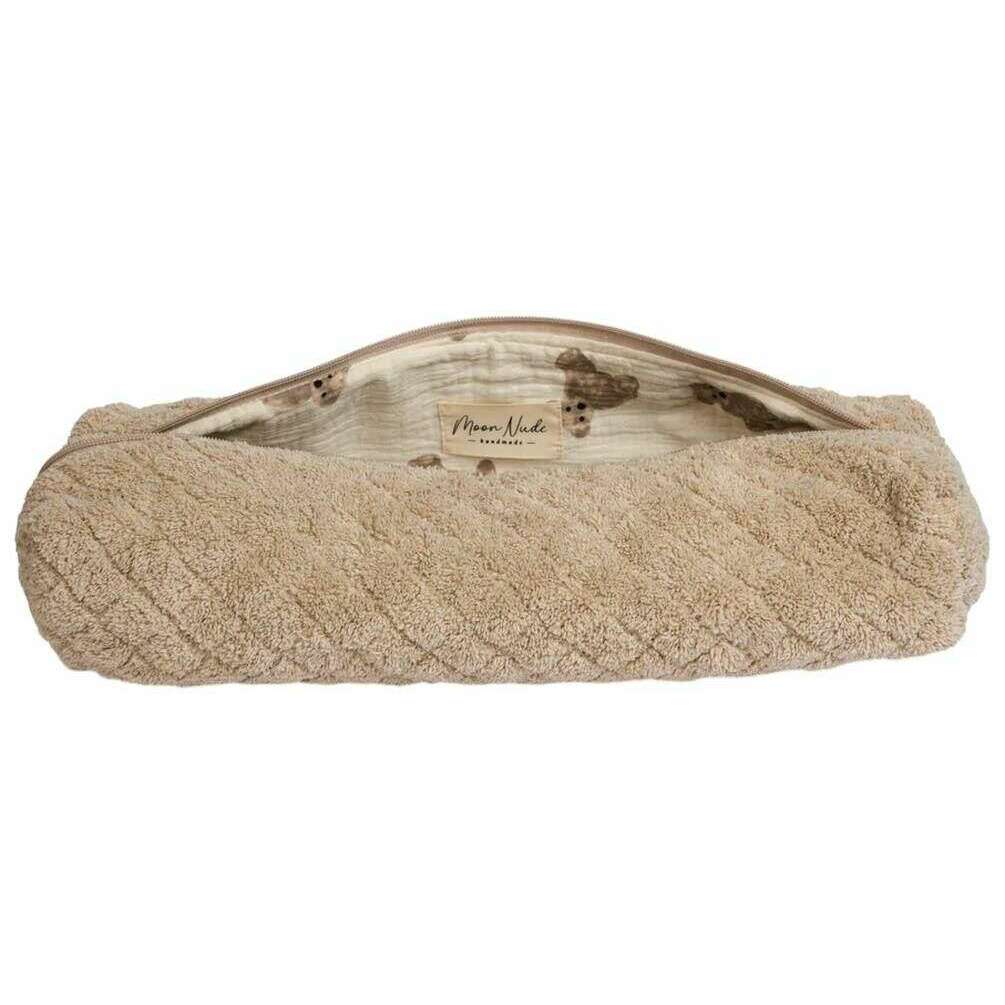 This teddy hair tool bag for women is fashioned by the brand Moon Nude in a beige colour and is made from 100% cotton. It measures 8cm(height) x 40cm(width) x 12cm(depth). It is recommended to wash by hand in cold water with a mild detergent, or maching wash inside out on a delicate cycle. to keep this bag in good condition. All the bags come complete with moon nude packaging. The Moon Nude Teddy Hair Tool Bag - Beige is an absolute necessity for your room or travel bag. This hair tool bag is guaranteed to keep all your hair products together and safe, whilst also being stylish and chic with its handmade quilted design.