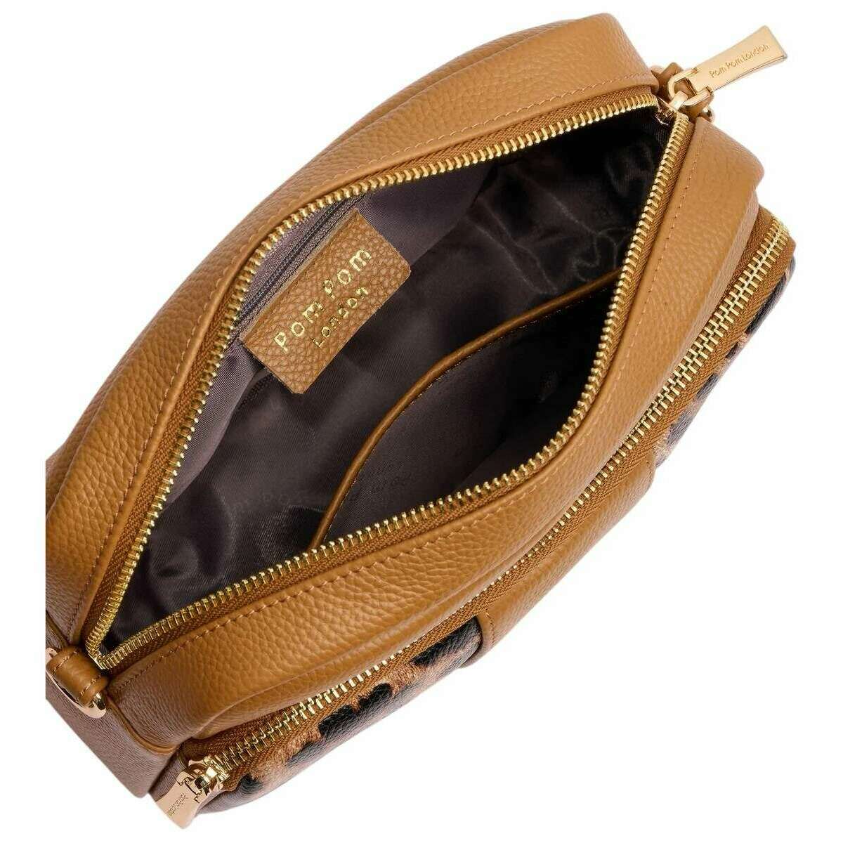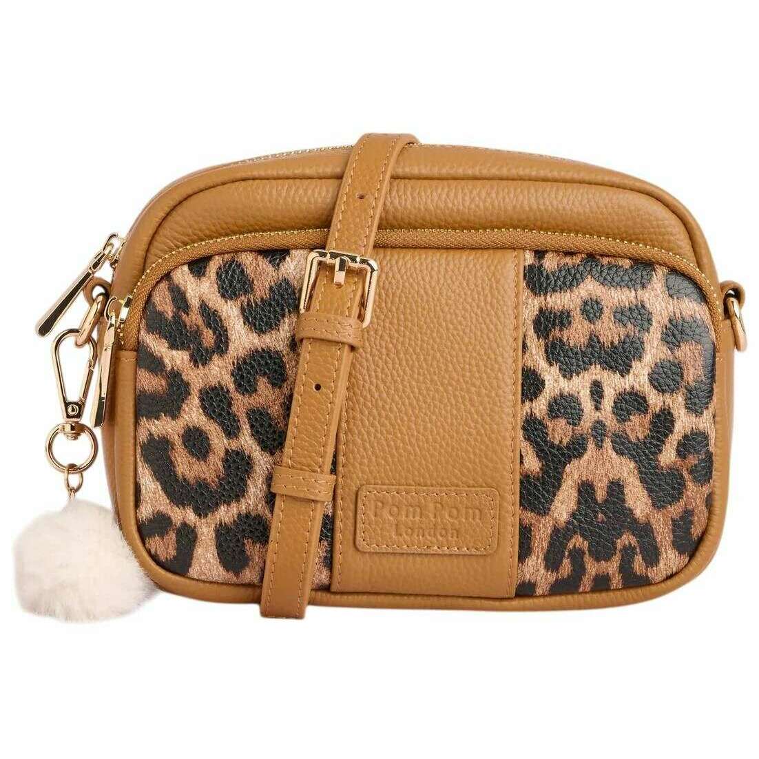 Perfect for women is this Pom Pom London maple original leopard print crossbody bag, it is also made from 100% full-grain leather. It measures 16cm(height) x 20cm(width) x 8cm(depth). All the bags come complete with pom pom london packaging. The Pom Pom London Original Leopard Print Crossbody Bag - Maple has a stunning leopard print design that transitions effortlessly from everyday casual outings to more formal events. Each piece is individually handmade, giving it a luxurious finish that reflects the brand s commitment to quality craftsmanship. Designed with practicality in mind, it comfortably holds daily belongings while ensuring the wearer remains stylish and organised. The bag features an adjustable matching leather strap that extends up to 125cm, allowing for a customisable and comfortable fit. Inside, users will find both a zip side pocket and an open side pocket, creating an easy system for organisation. Externally, three additional zip compartments offer convenient access to frequently needed items. A double reinforced leather base enhances durability, helping the bag maintain its shape over time. Completing the design, Pom Pom London s signature gold hardware adds a refined touch, giving the bag an elegant and iconic finish.