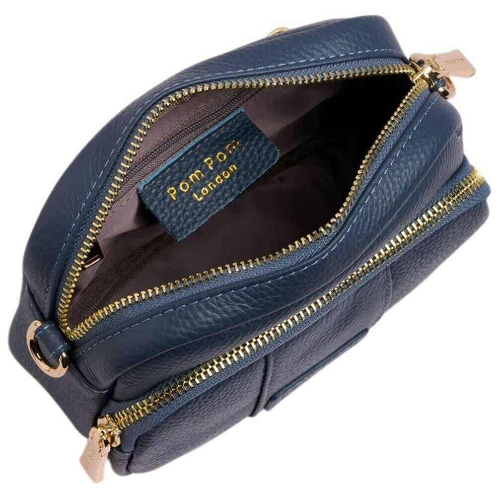 Using blue 100% full-grain leather, this original mini crossbody bag by Pom Pom London is perfect for women and a must have. It measures 14cm(height) x 16cm(width) x 6.5cm(depth). All the bags come complete with pom pom london packaging. The Pom Pom London Original Mini Crossbody Bag - Slate Blue has a petite design allowing it to transition effortlessly from everyday casual outings to more formal events, making it a versatile staple in any wardrobe. Each piece is individually handmade, giving it a luxurious finish that reflects the brand s commitment to quality craftsmanship. Designed with practicality in mind, it comfortably holds daily belongings while ensuring the wearer remains stylish and organised. The bag features an adjustable matching leather strap that extends up to 123cm, allowing for a customisable and comfortable fit. Inside, users will find a zip pocket creating an easy system for organisation. Externally, three additional zip compartments offer convenient access to frequently needed items. A double reinforced leather base enhances durability, helping the bag maintain its shape over time. Completing the design, Pom Pom London s signature gold hardware adds a refined touch, giving the bag an elegant and iconic finish.