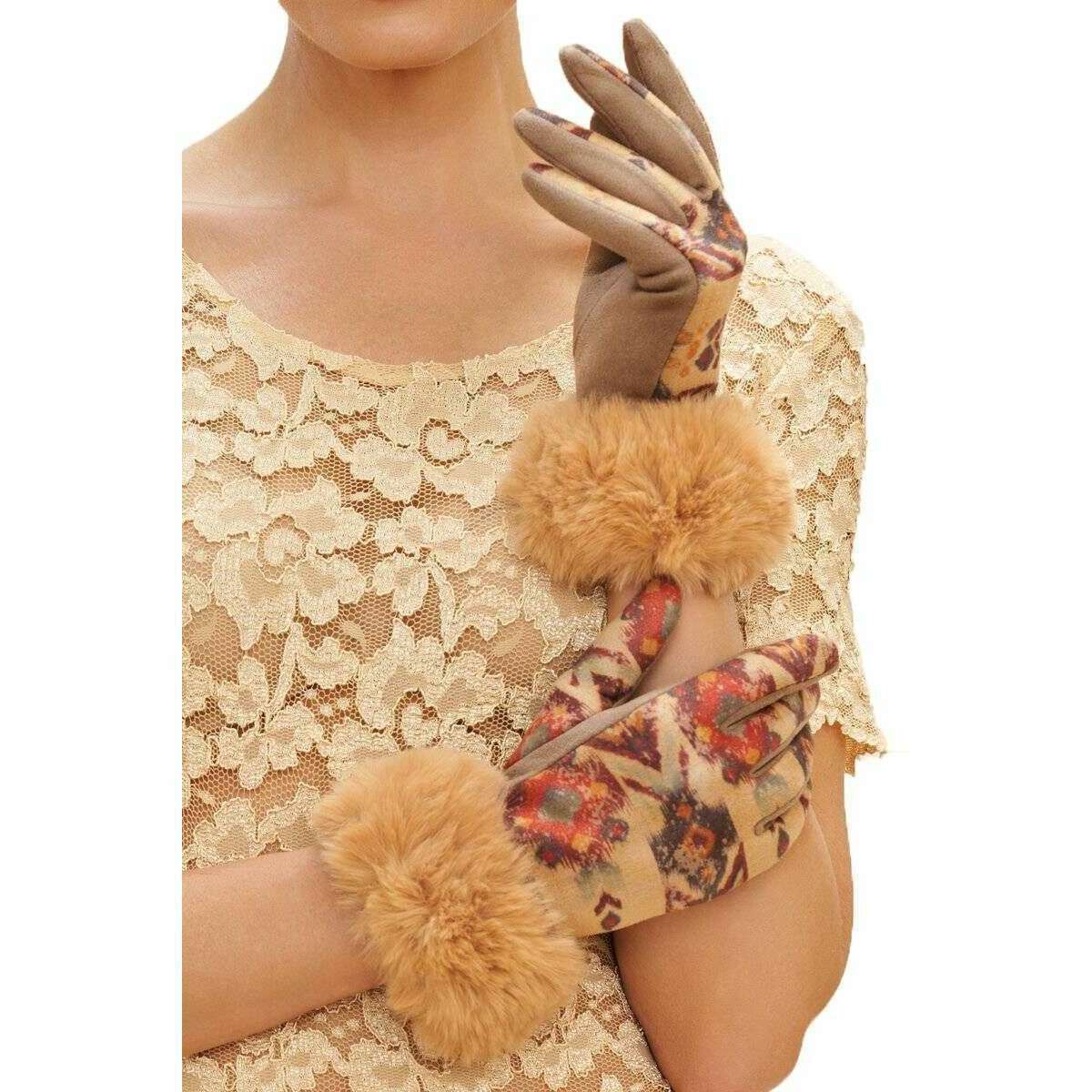 Manufactured from 90% polyester and 10% spandex are these cream women's bernadette warm ikat gloves by the designer Powder. It measures 24cm(height) x 12cm(width). Also the cream gloves are designed in a unique pattern, All the gloves come complete with powder tags. The Powder Bernadette Warm Ikat Gloves - Cream will definitely be one to catch the eyes of others due to the bold design and glamorous faux fur bottom. Great for winter but also making any of your outfits more stylish and fashionable for any season.