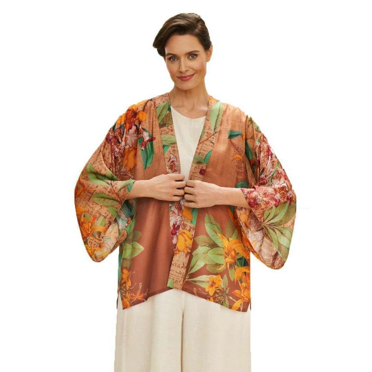 Manufactured from 50% viscose and 50% modal is this taupe women's botany bliss kimono jacket by the designer Powder. Also the taupe jacket is designed in a floral pattern, All the jackets come complete with powder tags. The Powder Botany Bliss Kimono Jacket - Taupe will provide you with a real standout look that you are sure to love! The bold colours and the intricate design make this jacket really standout. Wear with jeans and a top for the ideal coverup.