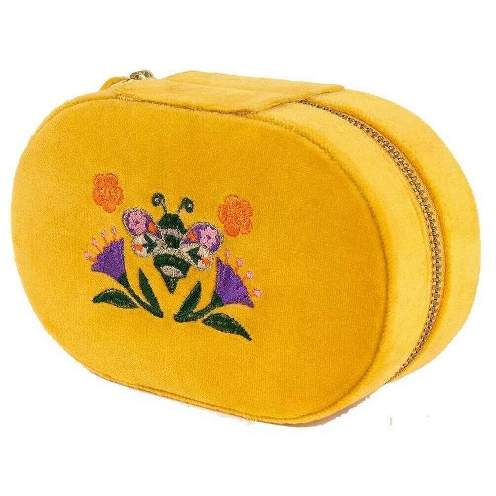 Brought to you by the brand Powder, this yellow/purple/orange women's brilliant bumblebee oval jewellery box is made from 100% polyester velvet. It measures 5cm(height) x 15cm(width) x 4cm(depth). All the jewellery boxes come complete with powder packaging. The Powder Brilliant Bumblebee Oval Jewellery Box - Yellow/Purple/Orange is a stunning case that will keep your jewellery organised in the sweetest and most elegant way. Featuring a ring holder section and two separate mini trays. Perfect for travelling or just to securely store your favourite pieces. This beautiful oval design creates a great size to fit into any bag of your choice when on the go. The embroidered outside adds a unique and cute look whilst the gold zipper adds the finishing touch.