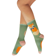 Powder Cosy Fox Ankle Socks - Green/Orange/Pink