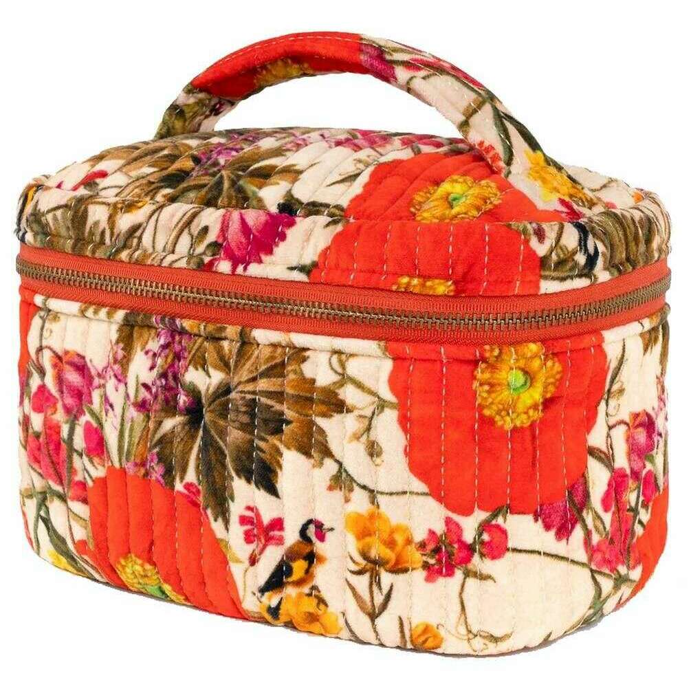 Powder Fine Flowers Quilted Vanity Case - White/Red/Brown