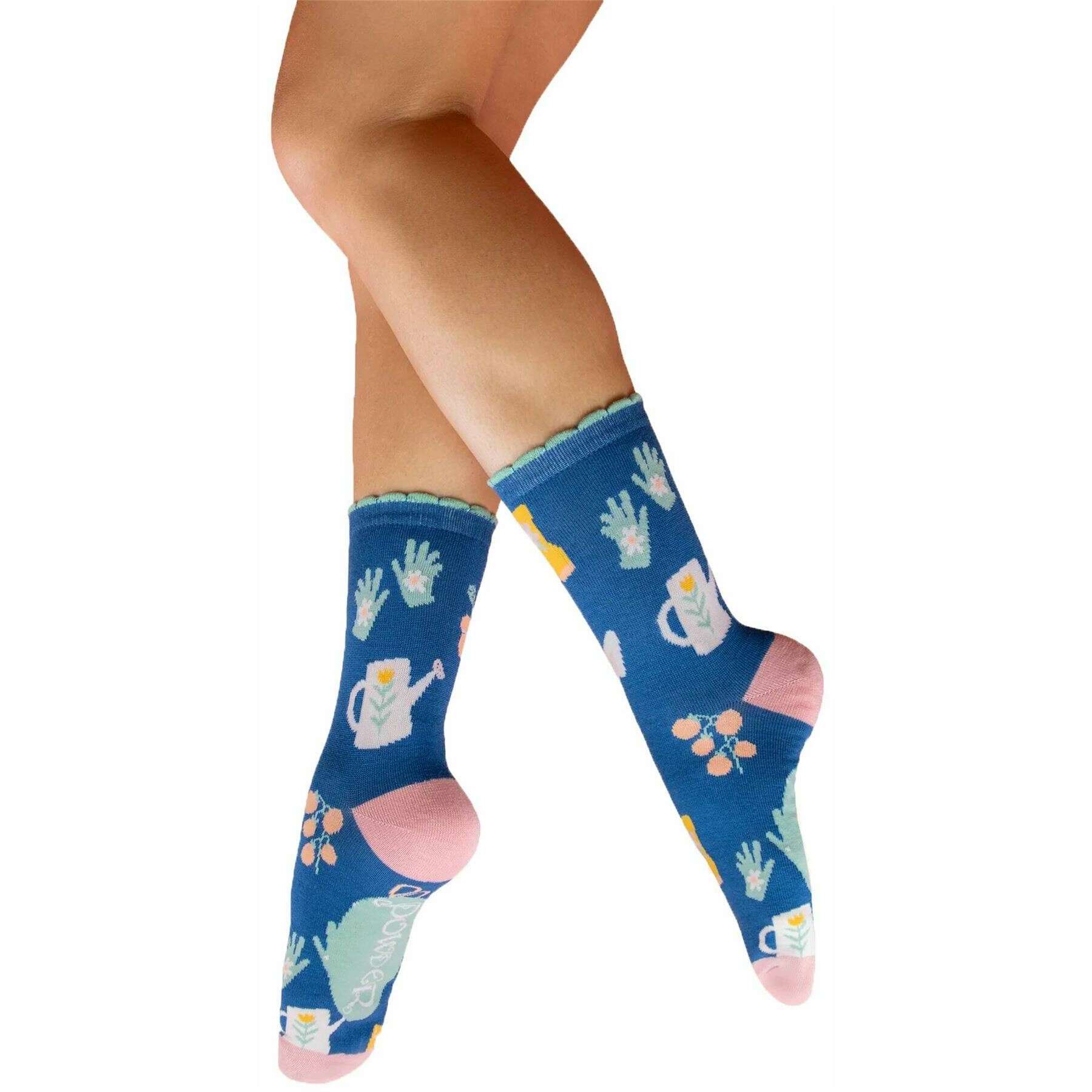Powder Gone Gardening Ankle Socks - Blue/Pink/Yellow
