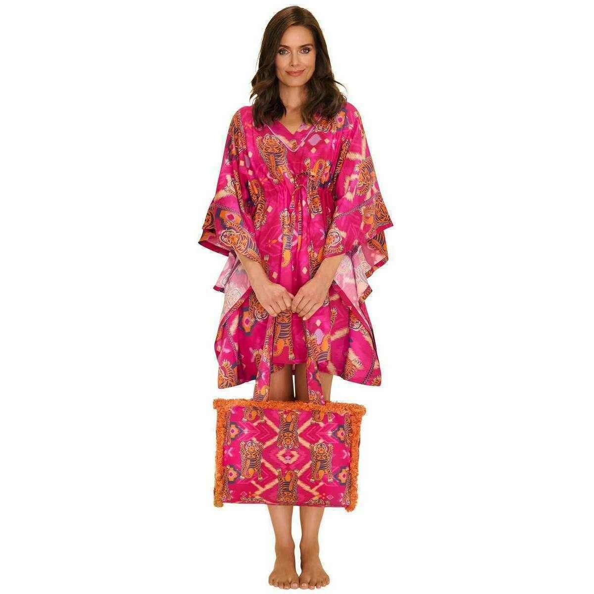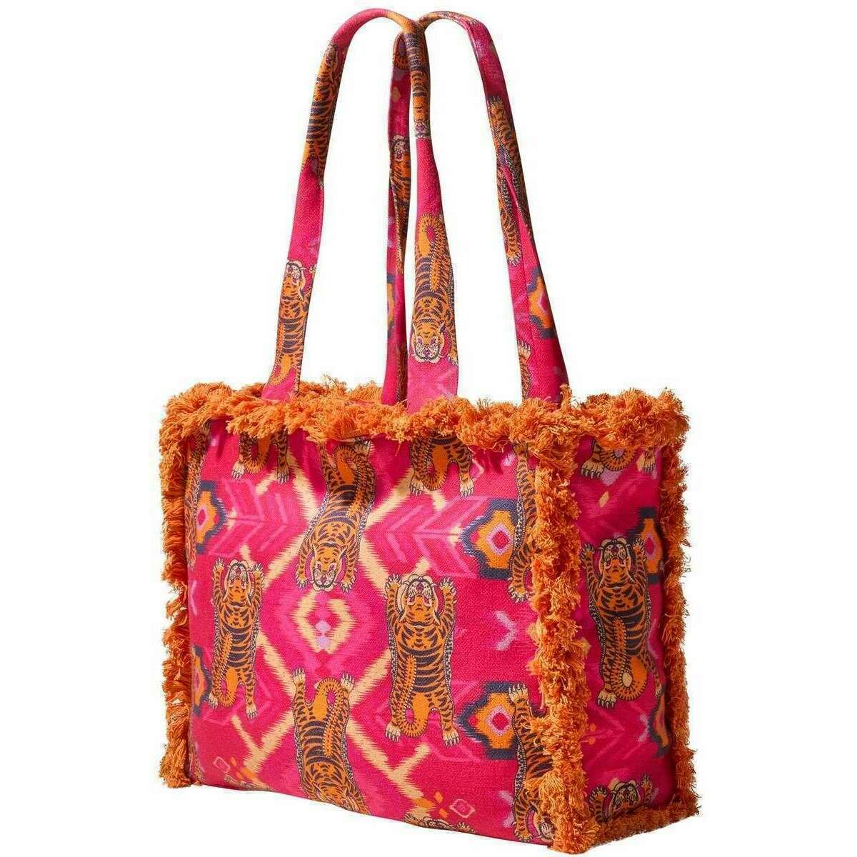 This ikat tigers fringed box tote for women is fashioned by the brand Powder in a pink colour and is made from 100% cotton. All the bags come complete with powder tags. The Powder Ikat Tigers Fringed Box Tote - Fuchsia Pink is a practical and diverse bag that can be used for everyday outings, trips to the beach or a picnic in the park. The stunning fringe detail adds timeless flair, and the twin carry handles make it a comfortable carry, whether that be over the shoulder or at your side. This piece offers easy storage with its open compartment in which you can just chuck things in and pull them right out.