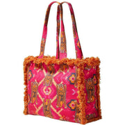 Powder Ikat Tigers Fringed Box Tote - Fuchsia Pink