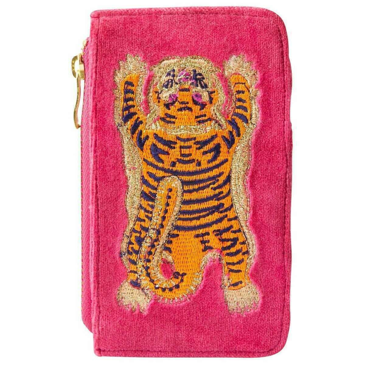Powder Ikat Tigers Velvet Card Holder - Fuchsia Pink