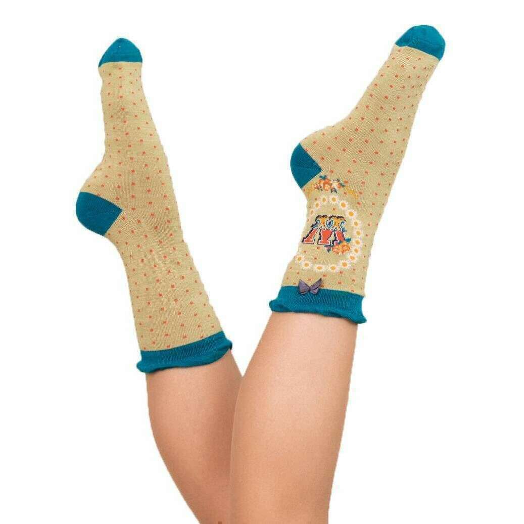 These well made women's letter w ankle socks from Powder come in a yellow colour and are manufactured from 65% bamboo, 15% cotton, 10% nylon and 10% elastane. Also the yellow socks are designed in a spots pattern, It is recommended to machine wash at 30 degrees to keep these socks in good condition. All the socks come complete with powder tags. The Powder Letter W Ankle Socks - Yellow are the perfect socks for a personalised gift! Made using bamboo these socks will keep your feet stylish and warm. Available with every letter of the alphabet these socks have a fun, playful design that you are sure to love!