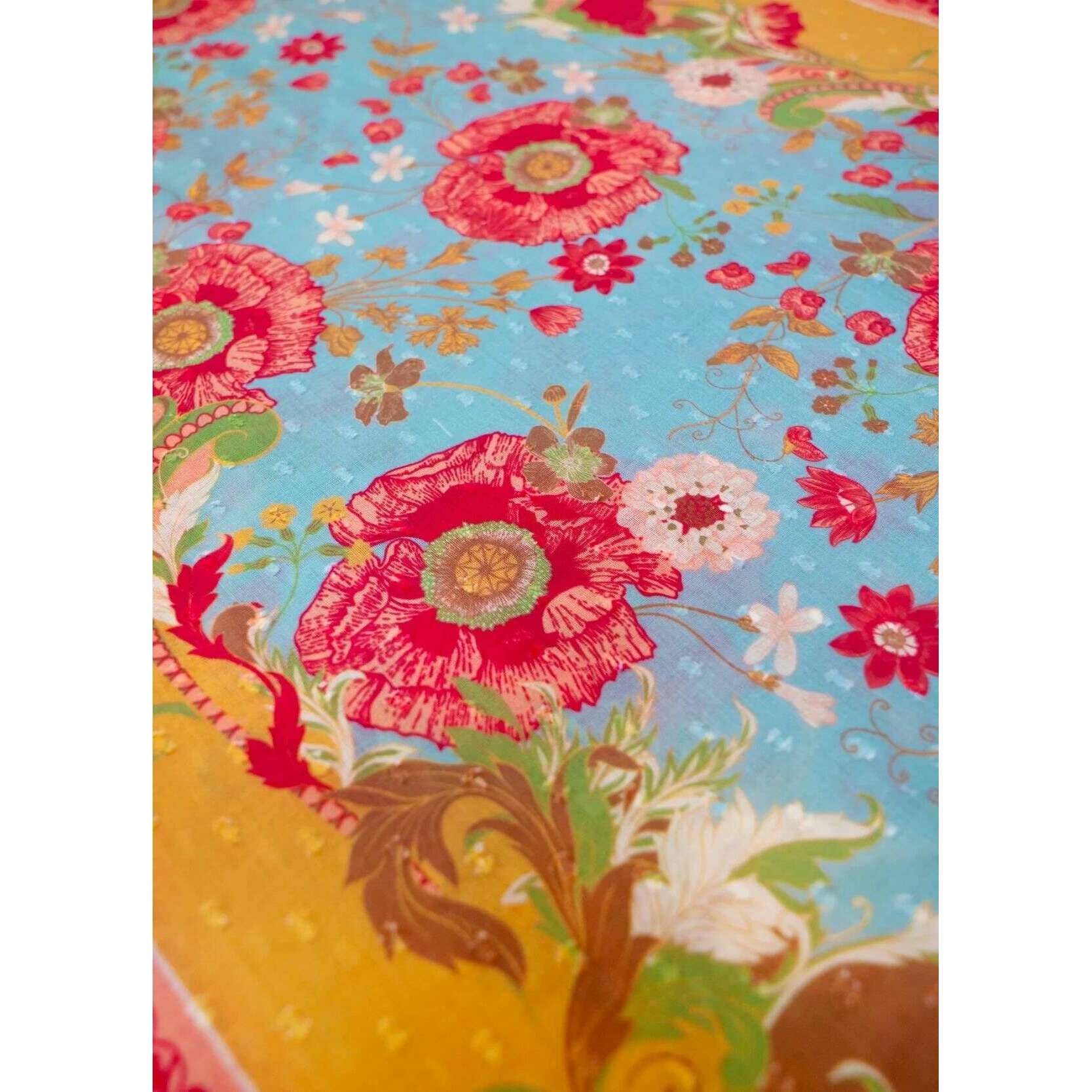 Powder Paisley Poppies Cotton Scarf - Yellow/Blue/Pink