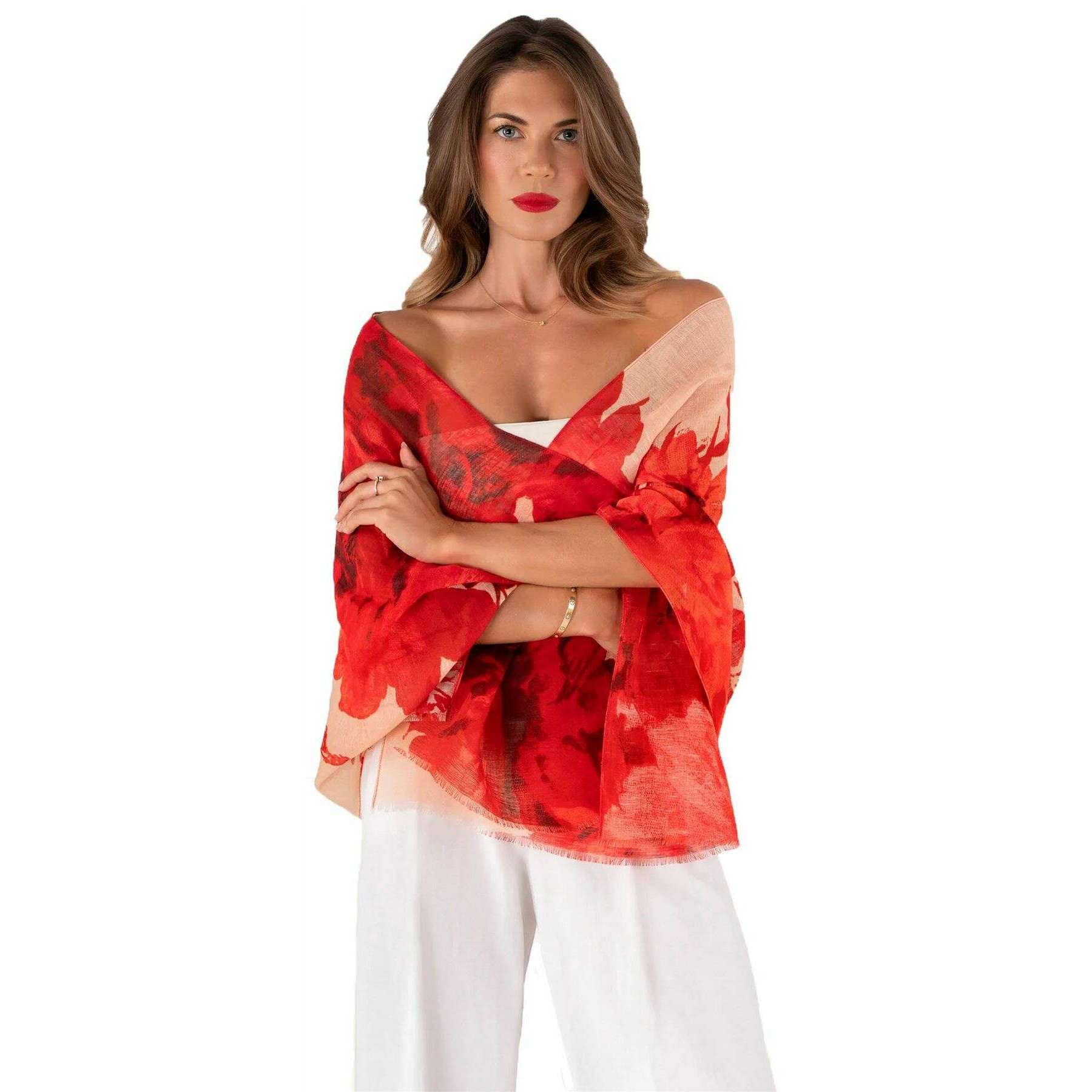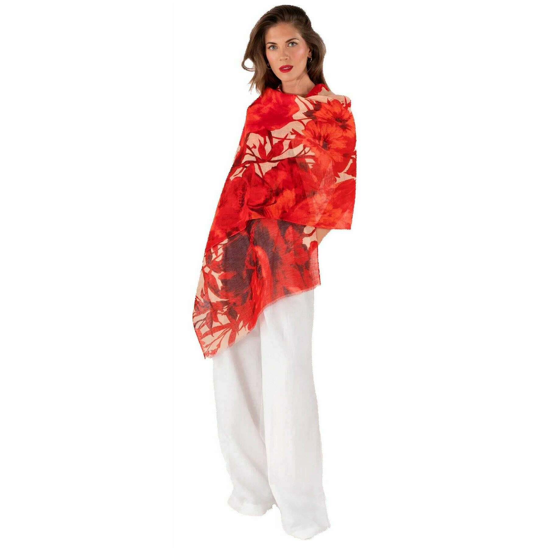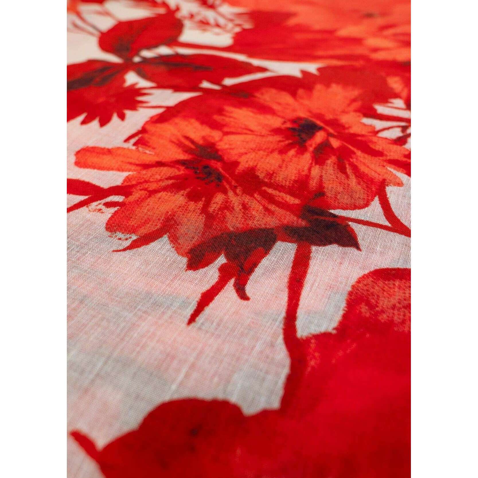 Powder Rouge Blooms Linen Cotton Scarf - Red/Beige