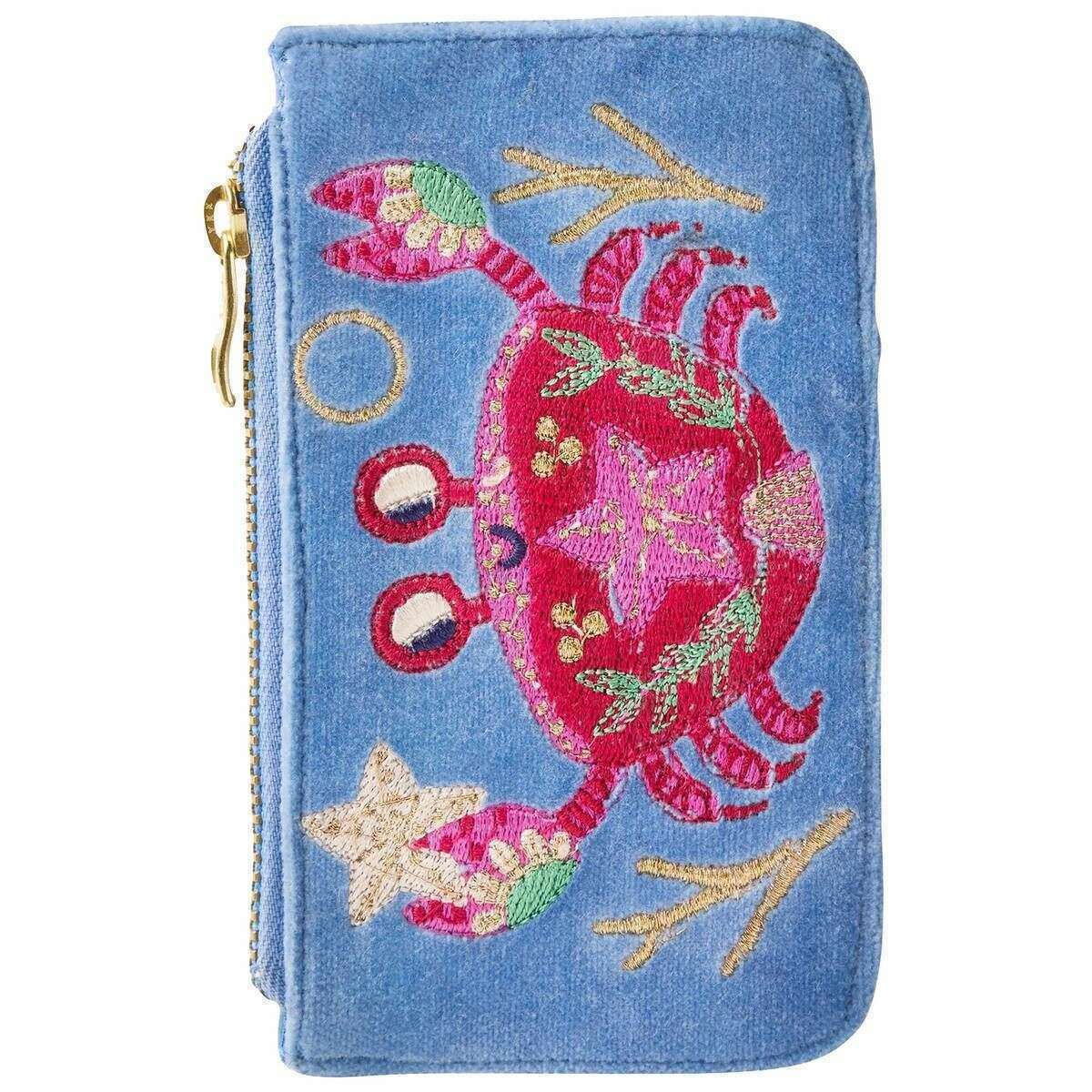 Powder Seafaring Crab Velvet Card Holder - Cornflower Blue
