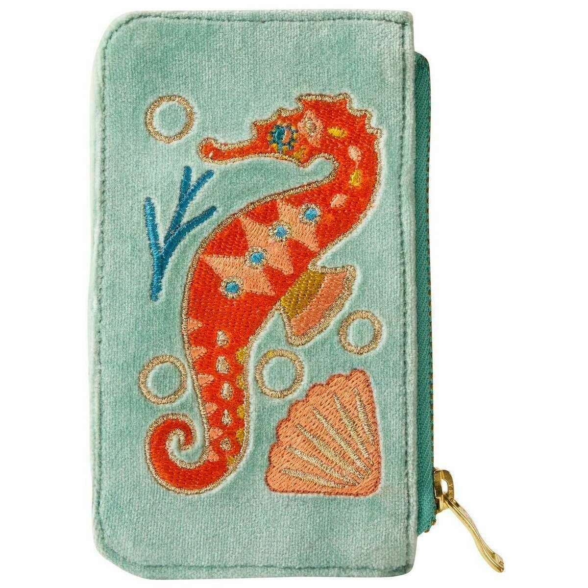 Powder Sparking Seahorse Velvet Card Holder - Aqua Blue