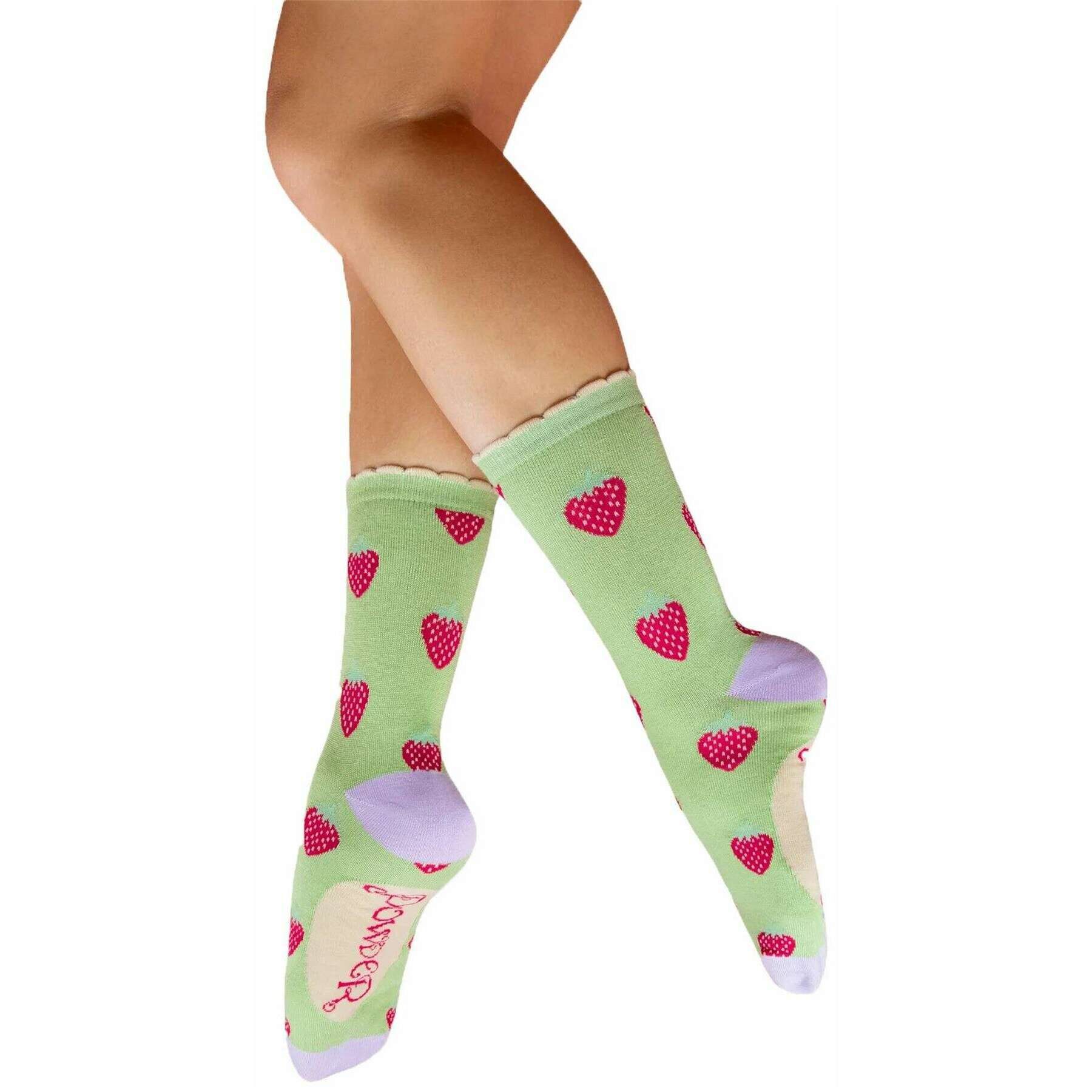 Perfect for women are these Powder green/red/purple succulent strawberries ankle socks, they are also made from 65% bamboo, 15% cotton, 10% nylon and 10% elastane. Also the green/red/purple socks are designed in a unique pattern, It is recommended to wash at 30 degrees to keep these socks in good condition. All the socks come complete with powder sock tags. The Powder Succulent Strawberries Ankle Socks - Green/Red/Purple feature a fun, playful design that will be a joyful addition to any of your outfits. Made using bamboo these socks are incredibly comfortable and durable. The rich colouring and playful background ensure these socks standout. Perfect as a gift these green and red socks are ideal for summery outfit.