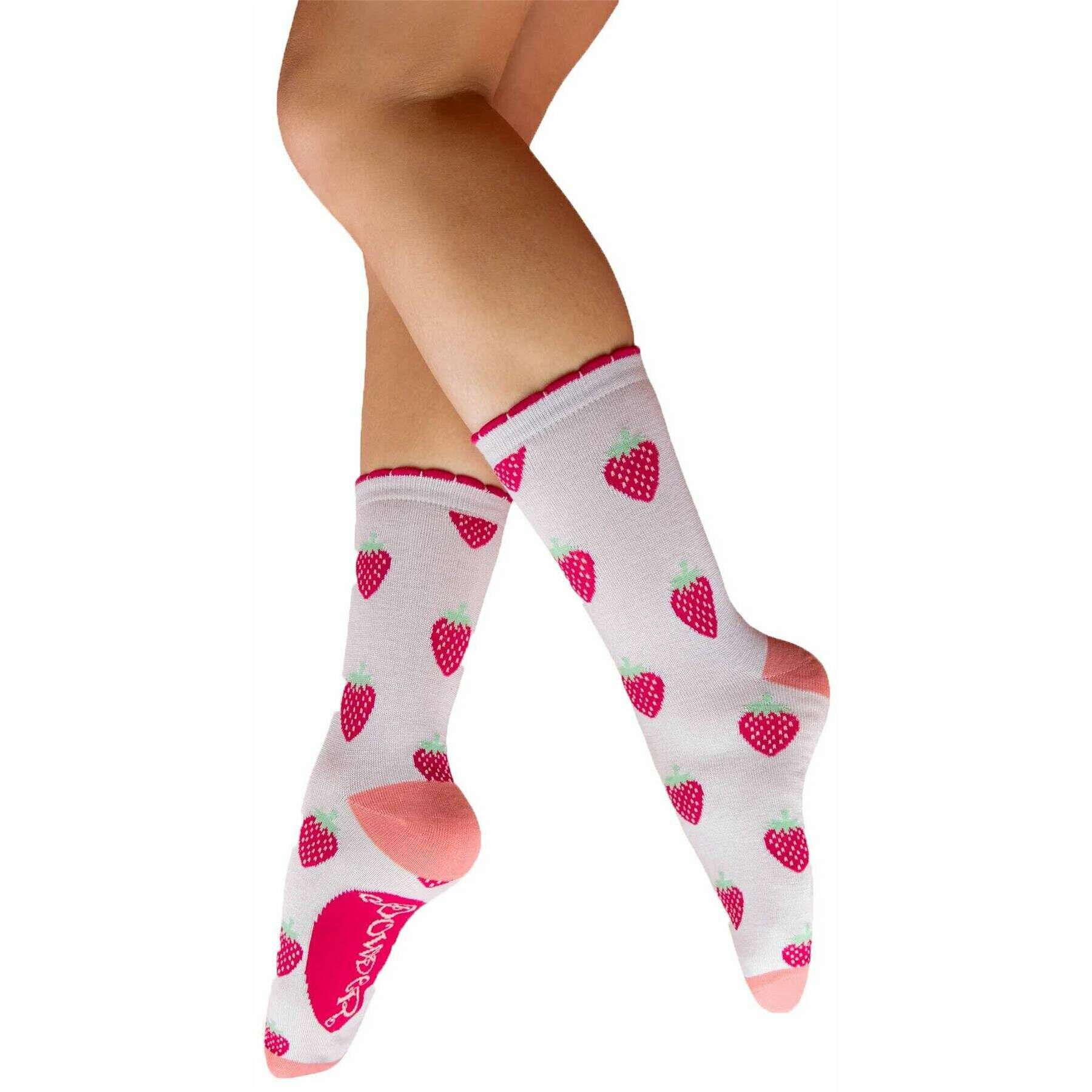 Perfect for women are these Powder white/pink succulent strawberries ankle socks, they are also made from 65% bamboo, 15% cotton, 10% nylon and 10% elastane. Also the white/pink socks are designed in a unique pattern, It is recommended to wash at 30 degrees to keep these socks in good condition. All the socks come complete with powder sock tags. The Powder Succulent Strawberries Ankle Socks - White/Pink feature a fun, playful design that will be a joyful addition to any of your outfits. Made using bamboo these socks are incredibly comfortable and durable. The rich colouring and playful background ensure these socks standout. Perfect as a gift these white and pink socks are ideal for summery outfit.