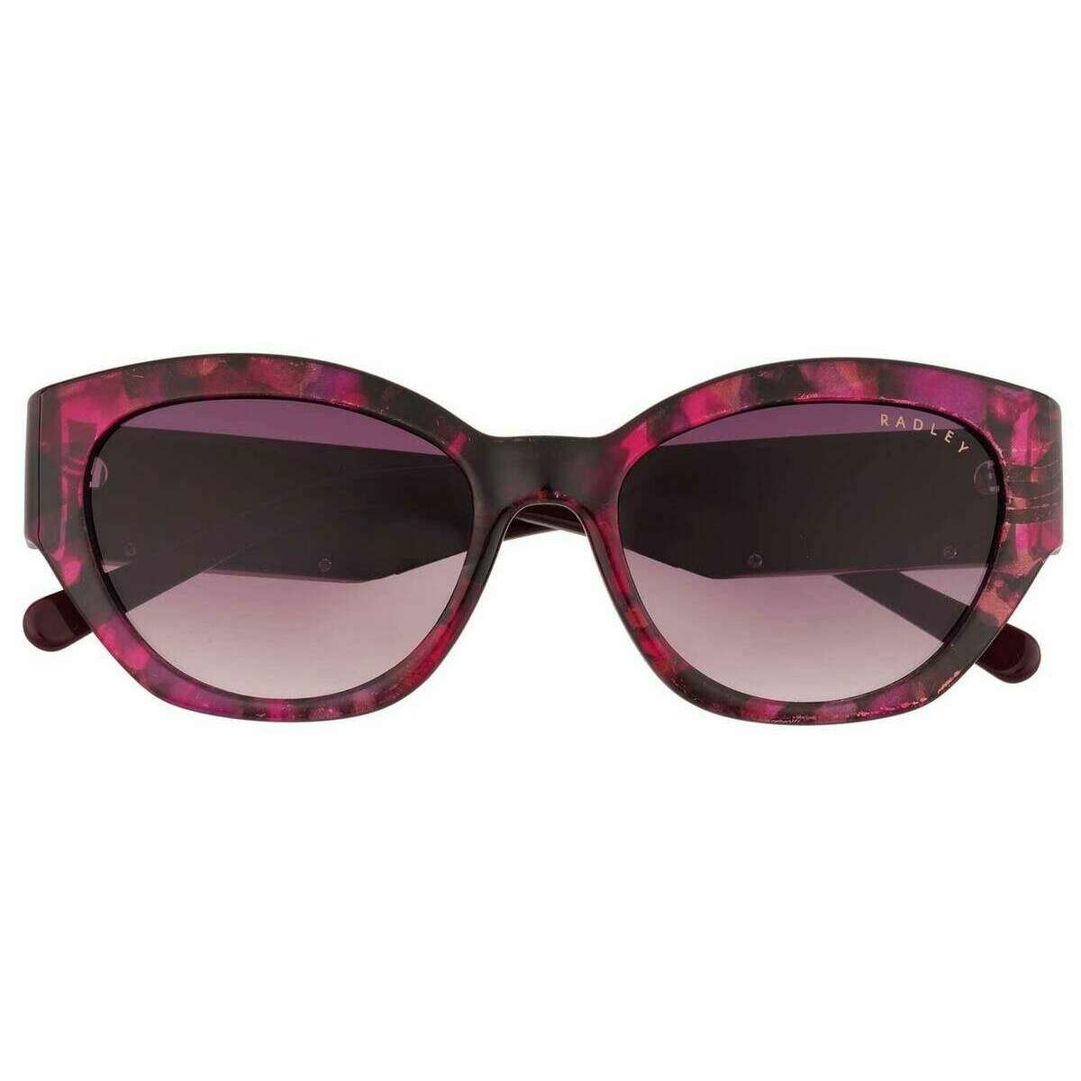 These women's chunky cat eye sunglasses have been made from 100% injected cellulose propionate, featured in a purple colour and are from the brand Radley London. It measures 5.5cm (lens width) x 1.8 (bridge width) x 14.5cm (temple length). It is recommended to wipe with cloth to keep these sunglasses in good condition. All the sunglasses come complete with radley london packaging. The Radley London Chunky Cat Eye Sunglasses - Purple will not only keep you in style on sunny days but also keep you protected whether that is to gorgeously compliment a fashionable outfit or to use when sunbathing. Having a chunky design ensures you’re in trend this summer giving a glamourous look and the bronze metal bar on the temples keeps this pair classy and elegant. These have been crafted to ensure upmost comfort all day long with the perfectly shaped temples and nose bridge. Completing this look is the branding on the lens and temple to ensure your fashionable choice will not go unnoticed. These will without a doubt become your go-to sunglasses for them bright beautiful days.