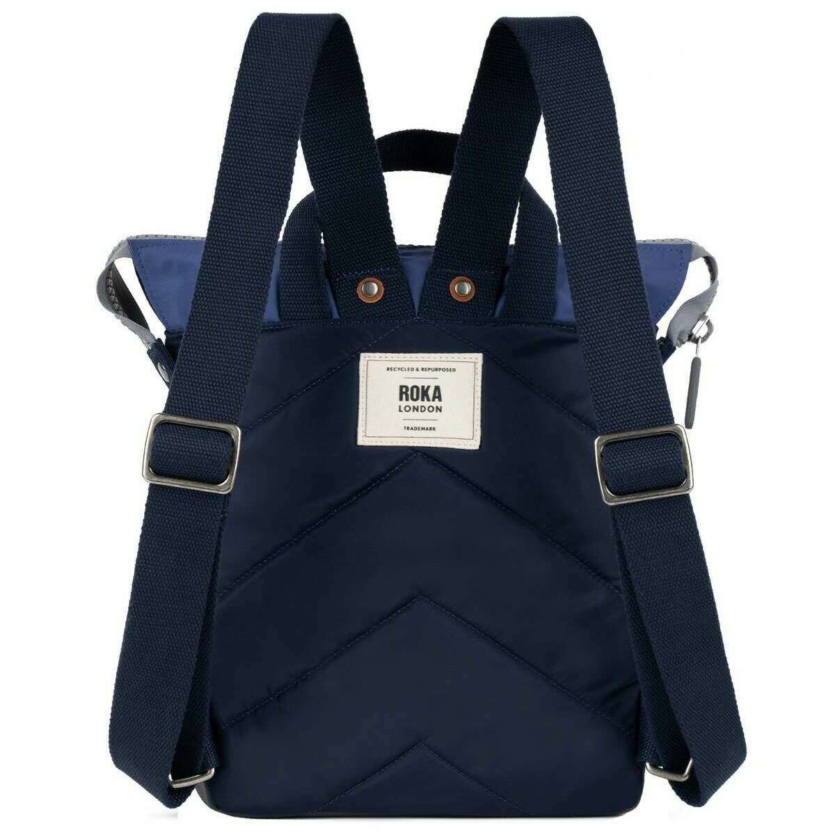 This bantry b small indigo tonal recycled canvas backpack for men or women is fashioned by the brand Roka in a purple colour and is made from 100% weather-resistant recycled canvas. It measures 32cm(height) x 23cm(width) x 10cm(depth). All the bags come complete with roka packaging. The Roka Bantry B Small Indigo Tonal Recycled Canvas Backpack - Indigo Purple features a harmonised design that will add a pop of colour to your look. It has four straps which allows it to be carried on your back or by your side. This backpack is perfect for your daily needs as it features a zipped front pocket, secure inside pocket, and a padded pocket for your tablet/laptop. Crafted from recycled nylon that is used from post-consumer waste, which is recycled fibres, offcuts and repurposed material, it is also lightweight and smooth as well as sustainable. Vegan friendly and water-resistant, it is the ultimate choice of backpack.
