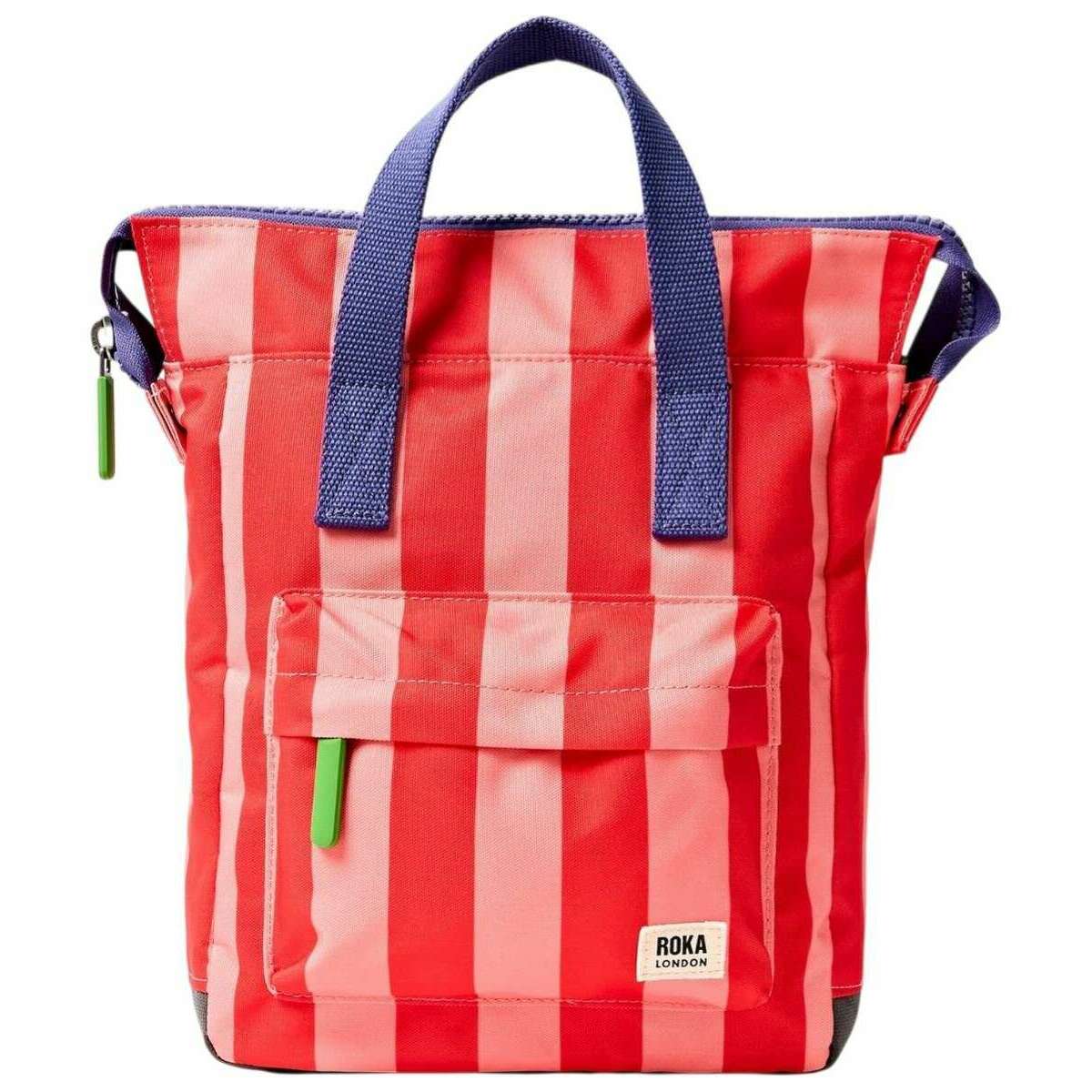 This unisex bantry b small recycled canvas backpack by the brand Roka is made from 100% recycled cotton canvas and is showcased in red. It measures 32cm(height) x 23cm(width) x 10cm(depth). All the bags come complete with roka packaging. The Roka Bantry B Small Recycled Canvas Backpack - Circus Print Red/Pink features a gorgeous colour that will add a pop of personality to your look. This backpack is perfect for your daily needs as it features a zipped front pocket, secure inside pocket, and a padded pocket for your tablet/laptop. Crafted from recycled canvas that is used from post-consumer waste, its also lightweight and smooth as well as sustainable. Vegan friendly and water-resistant, it is the ultimate choice of backpack.