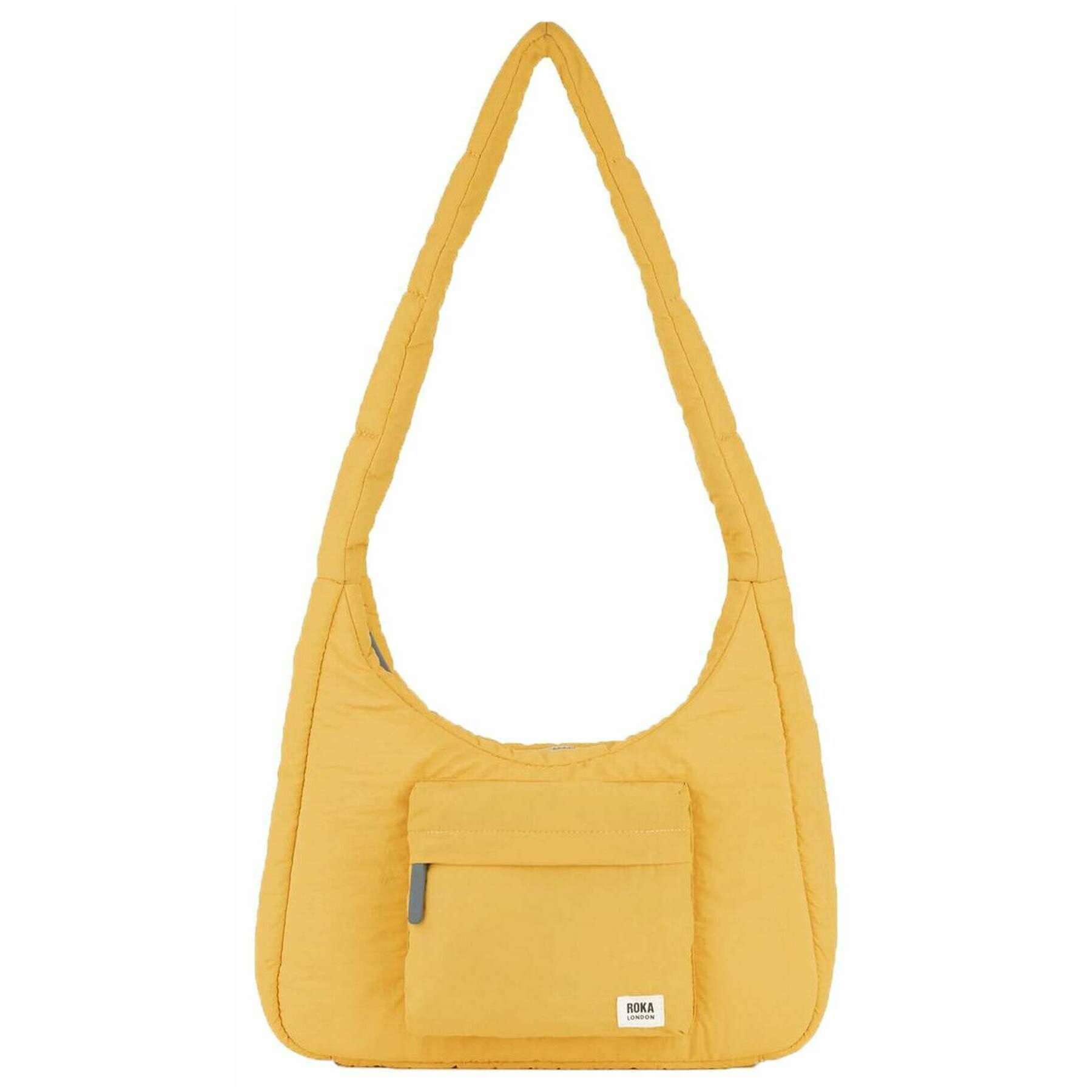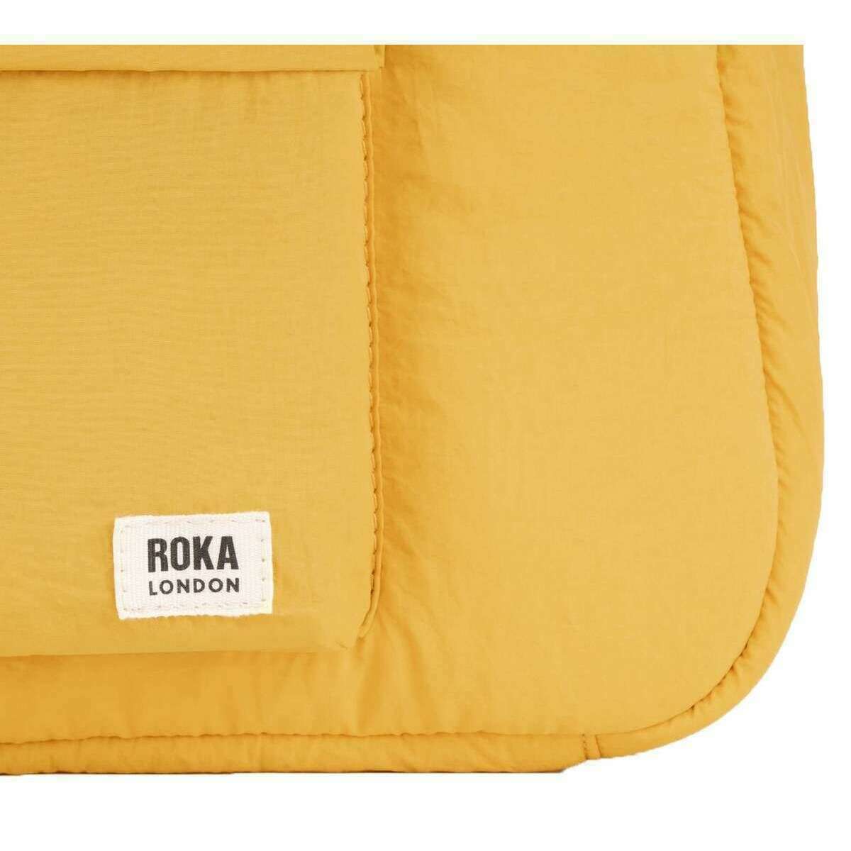 This belsize recycled taslon medium crossbody bag for men or women is fashioned by the brand Roka in a yellow colour and is made from 100% recycled nylon. It measures 37cm(height) x 12cm(width) x 33cm(depth). All the bags come complete with roka packaging. The Roka Belsize Recycled Taslon Medium Crossbody Bag - Corn Yellow is a stylish and versatile puff taslon bag that combines functionality with a delightful design. With a strap that allows you to wear crossbody or over the shoulder, this bag features a spacious interior, nylon zipped pocket, water bottle holder and extra compartments for all your essentials. There is an external puffed B-pocket for quick access to your most used items whilst on the move. Perfect for work, travel or weekend adventure, this bag delivers a lightweight, comfortable carry while giving off contemporary, eye-catching vibes.