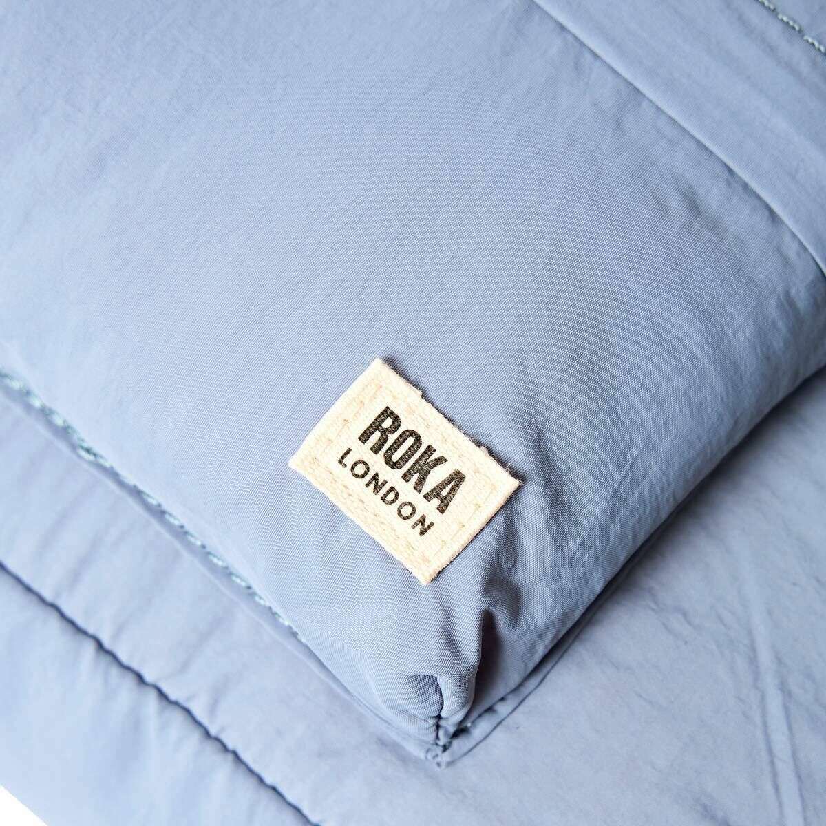 Perfect for men or women is this Roka retro blue belsize recycled taslon small handbag, it is also made from 100% recycled nylon. It measures 25cm(height) x 28cm(width) x 10cm(depth). All the bags come complete with roka packaging. The Roka Belsize Recycled Taslon Small Handbag - Retro Blue is a stylish and versatile puff taslon bag that combines functionality with a delightful design. With a strap that allows you to wear over the shoulder, this smaller bag features a spacious interior, nylon zipped pocket and extra compartments for all your essentials. There is an external puffed B-pocket for quick access to your most used items whilst on the move. Perfect for work, travel or weekend adventure, while giving off contemporary, eye-catching vibes.