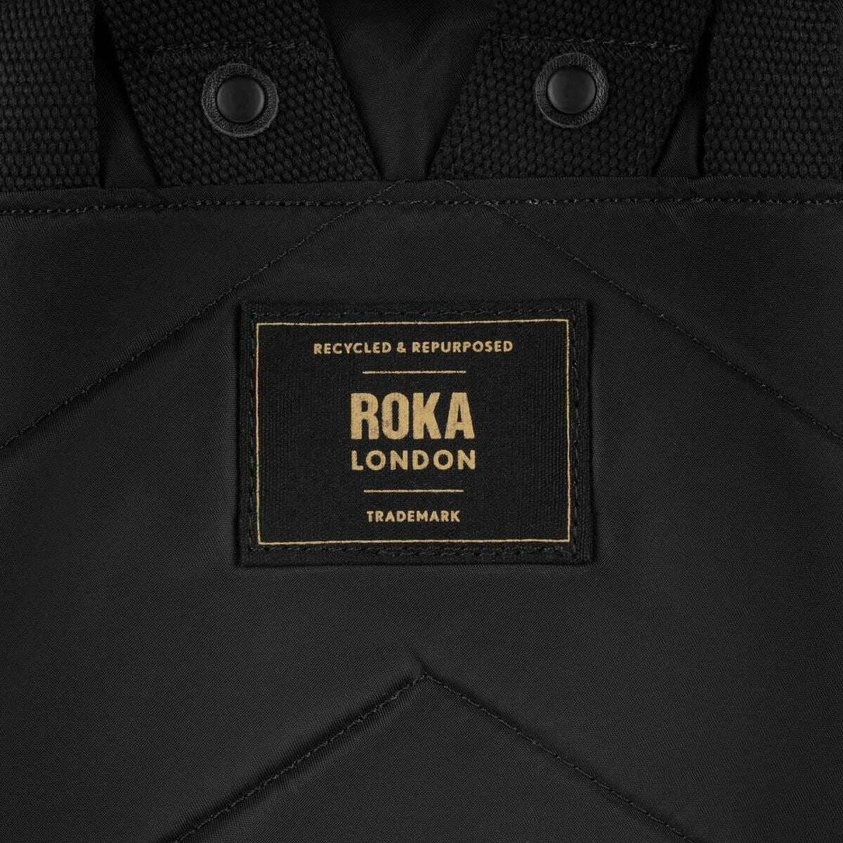 Brought to you by the brand Roka, this black/gold unisex canfield b gold label medium recycled nylon backpack is made from 100% recycled nylon (triple-coated). It measures 42cm(height) x 30cm(width) x 12cm(depth). All the bags come complete with roka packaging. The Roka Canfield B Gold Label Medium Recycled Nylon Backpack - Black/Gold is weather-resistant, durable, lightweight and sleek. Excellently crafted from recycled rPET materials, 12 or more plastic bottles are used to create this backpack making it environmentally friendly and sustainable. The roll top design enables the backpack to have a wide mouth opening which is secured with a sturdy zip and magnetic hold, carrying your essentials couldn t be safer. This bag come equipped with a secret wallet pocket, a padded 15 laptop compartment and two side pockets perfect for water bottles. Fitted with webbed straps you can carry it on your back or at your side using its sturdy handles. The Canfield B is a vegan friendly companion.