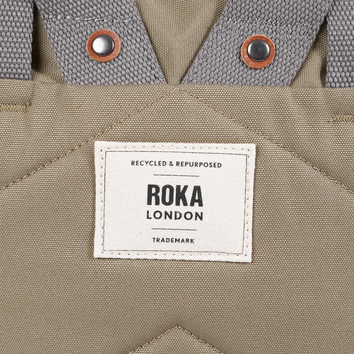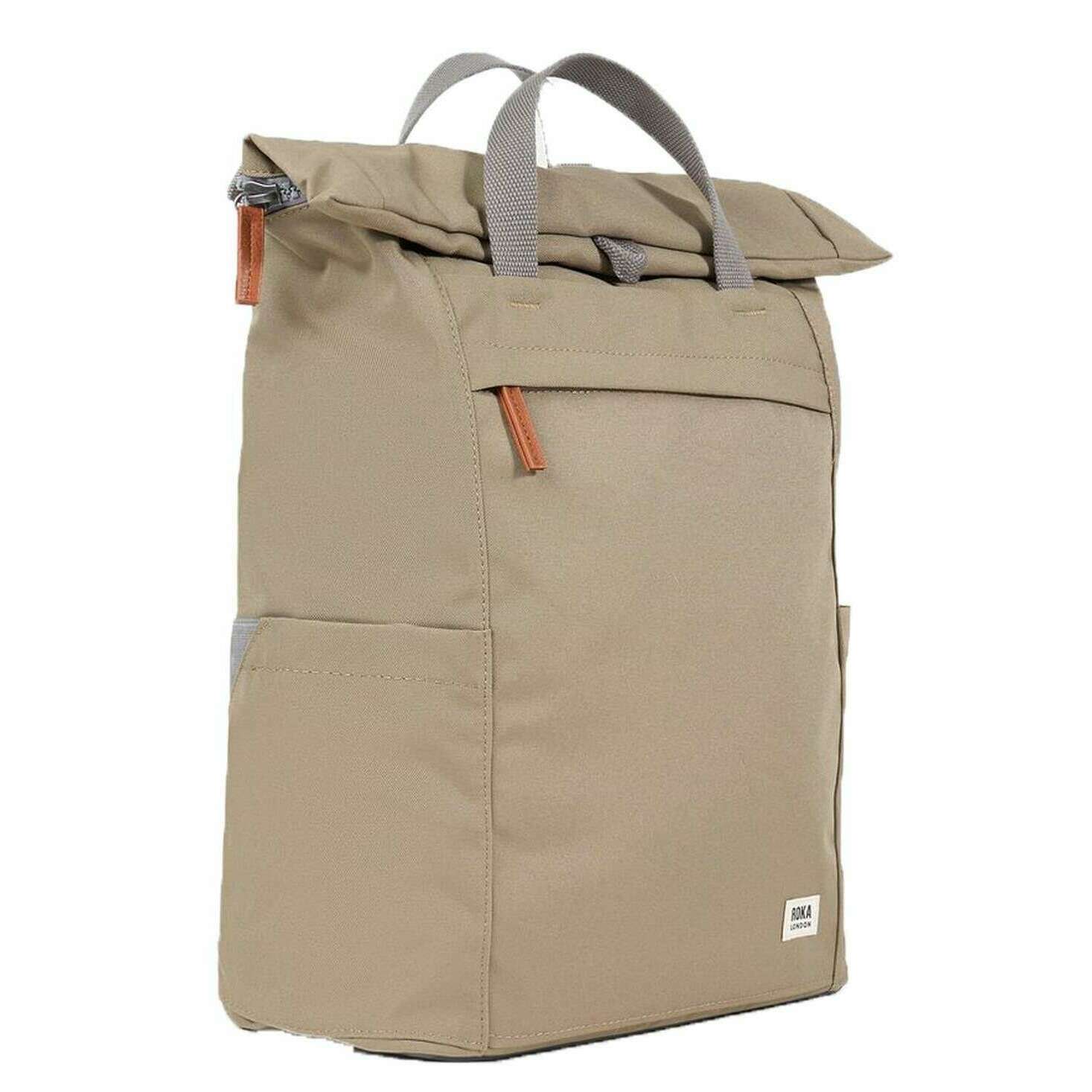 Designer Roka has brought you this unisex 100% recycled canvas (triple-coated) bag using taupe beige tones. It measures 45cm(height) x 32cm(width) x 14.5cm(depth). All the bags come complete with roka packaging. The Roka Finchley A Large Recycled Canvas Backpack - Taupe Beige holds and organises an impressive number of items, all within the roll-top design. Water-resistant and crafted from recycled materials, this backpack is sustainable, vegan and kind to the environment. There is a lightly padded laptop pocket that will fit your devices up to 17" and the extra storage space holds a change of clothes, water bottle, snacks and more! The zip pocket on the front is perfect for things you need to access quickly whilst on the move. The back padding and cotton straps provide comfort to the back and shoulders for comfortable carrying, perfect for everyday use.