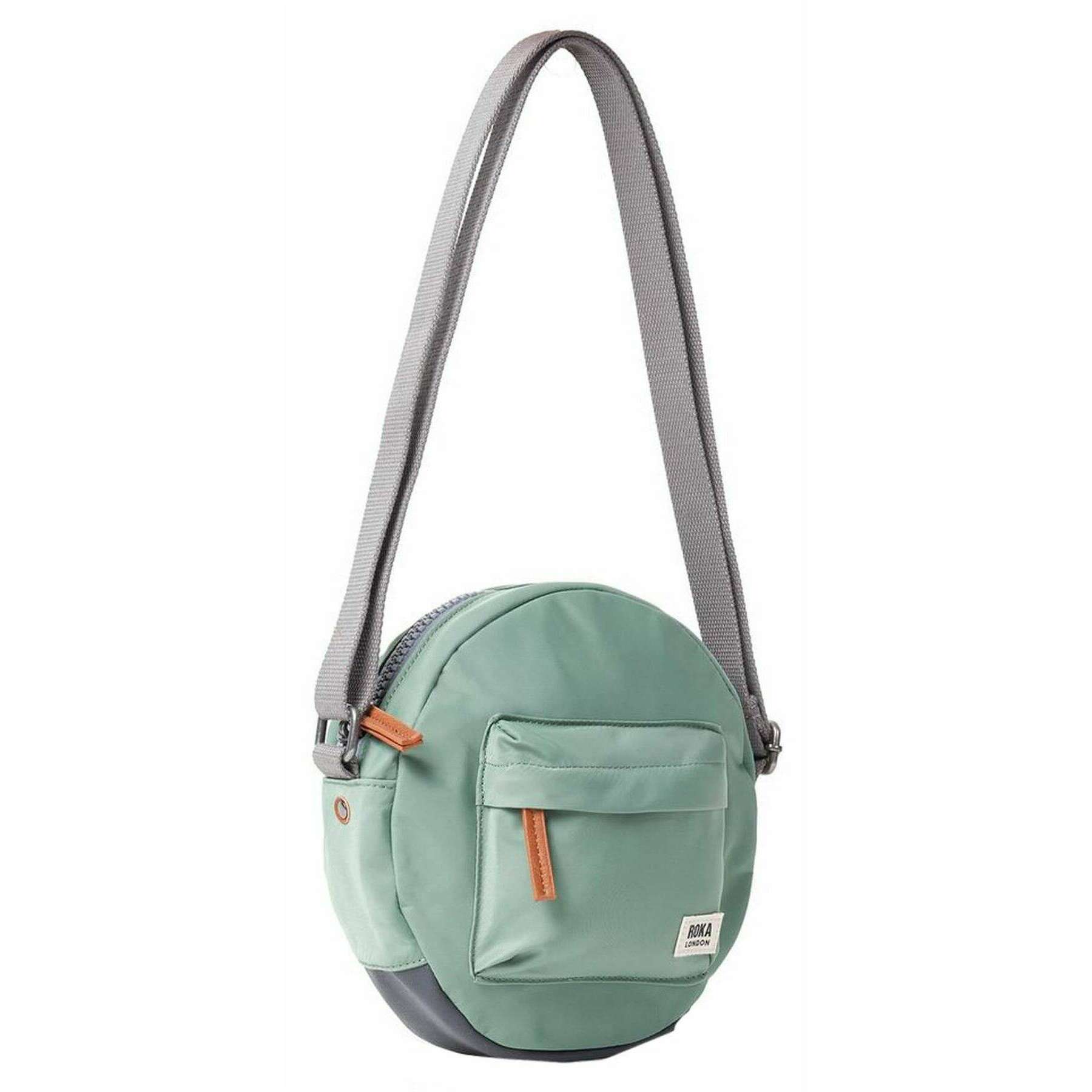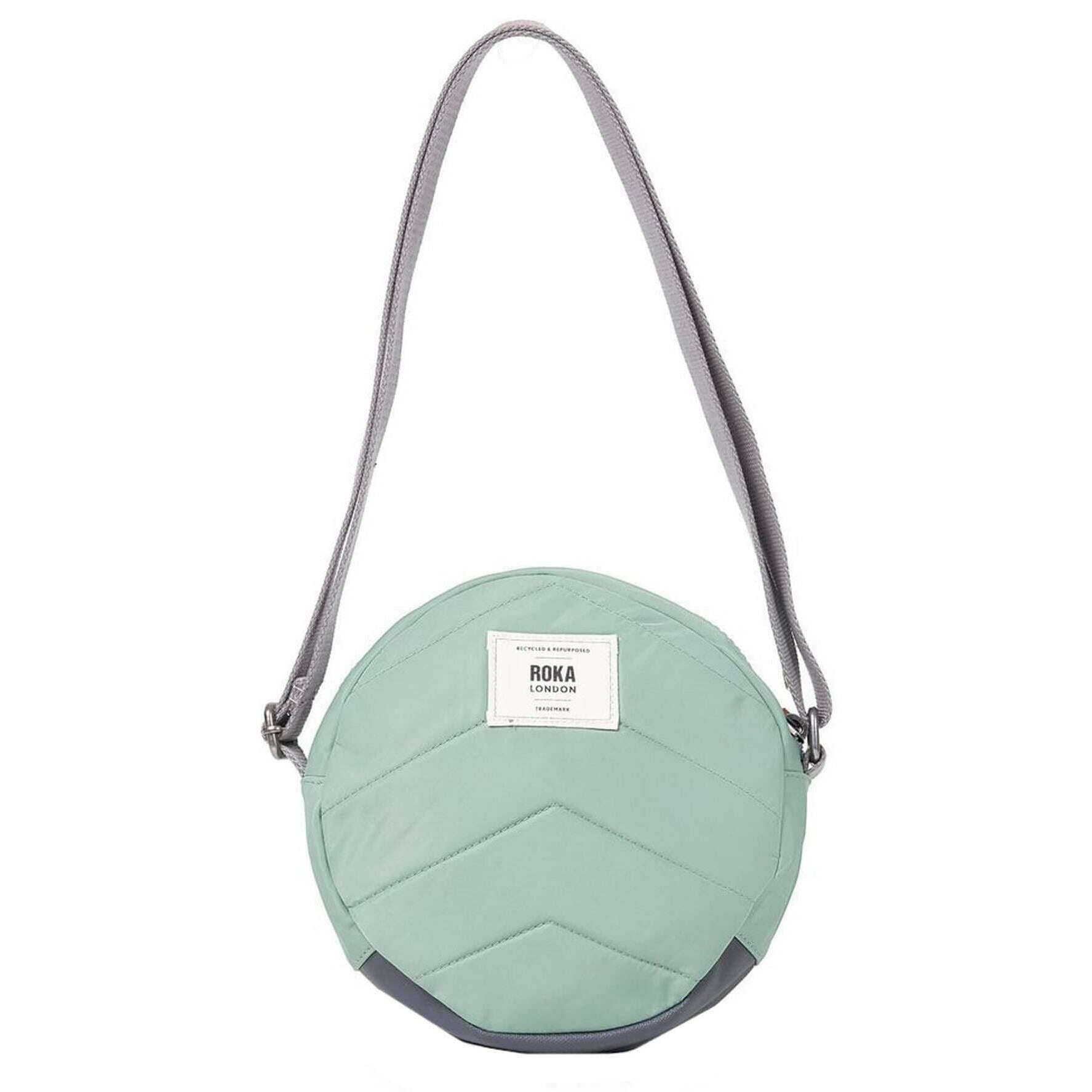 This well made unisex paddington b small recycled nylon crossbody bag from Roka comes in a frost green colour and is manufactured from 100% recycled nylon (triple-coated). It measures 23cm(height) x 23cm(width) x 7cm(depth). All the bags come complete with roka packaging. The Roka Paddington B Small Recycled Nylon Crossbody Bag - Frost Green is the perfect round bag that suits any style! Extremely practical and comfortable, this design features three pockets and a sectional organiser to keep your items safe and secure. The front pocket with zipper makes finding important things like wallet and keys faster! Being water-resistant and durable, this elegant crossbody bag will be an indispensable accessory of your daily life! Expertly crafted from recycled materials, this bag is also kind to the environment, sustainable and vegan friendly.