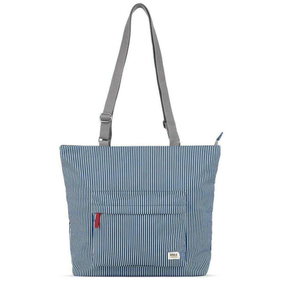 Perfect for men or women is this Roka red/blue/white trafalgar b medium hickory with red recycled canvas tote bag, it is also made from 100% weather-resistant recycled canvas. It measures 37cm(height) x 45cm(width) x 9.5cm(depth). All the bags come complete with roka packaging. The Roka Trafalgar B Medium Hickory with Red Recycled Canvas Tote Bag - Red/Blue/White displays a classic striped design with a pop of red to add a bit of brightness into your days. This is a stylish tote bag that is essential to add to your everyday style. Designed to organise all of your day-to-day necessities it is equipped with a laptop pocket, internal water bottle compartment and secure zipped pockets throughout for your smaller, more valuable items. Crafted from sustainable, weather resistant materials this tote is a must have for all. Carry it at your side or tossed over your shoulder with its comfortable and durable webbed straps which can be adjusted to the desired length.
