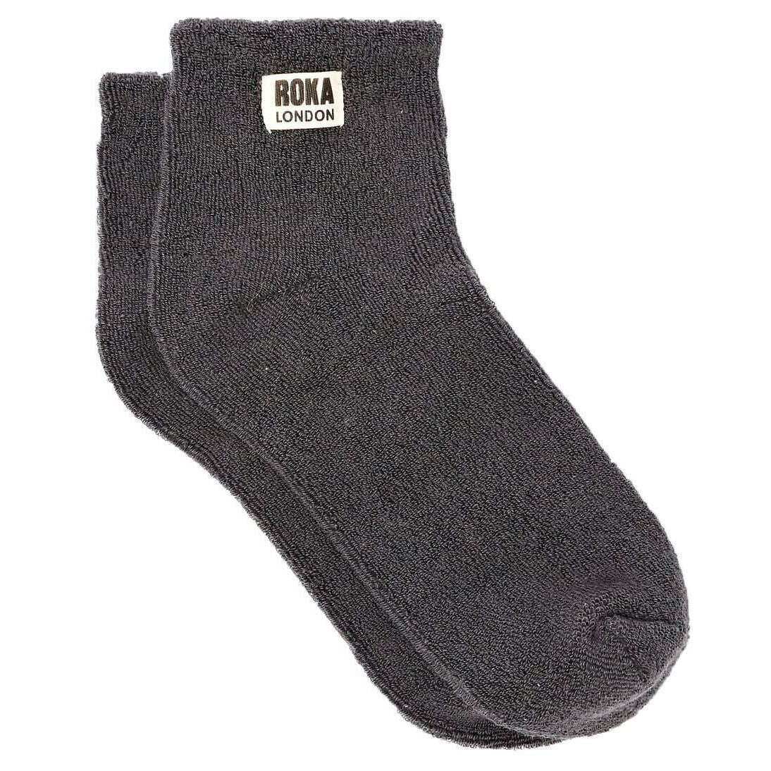 Designer Roka have brought you these women's 82% organic cotton, 10% nylon and 2% elastane socks using faded black tones. Also the faded black socks are designed in a plain pattern, All the socks come complete with roka packaging. The Roka Watford Socks - Faded Black are the perfect socks for everyday wear. The organic fluffy cotton blend ensures your feet are kept snug and comfortable all day, whilst the beautiful black colour keeps you looking stylish and trendy. These socks come with a Roka logo stitched on the side, giving them that staple look.