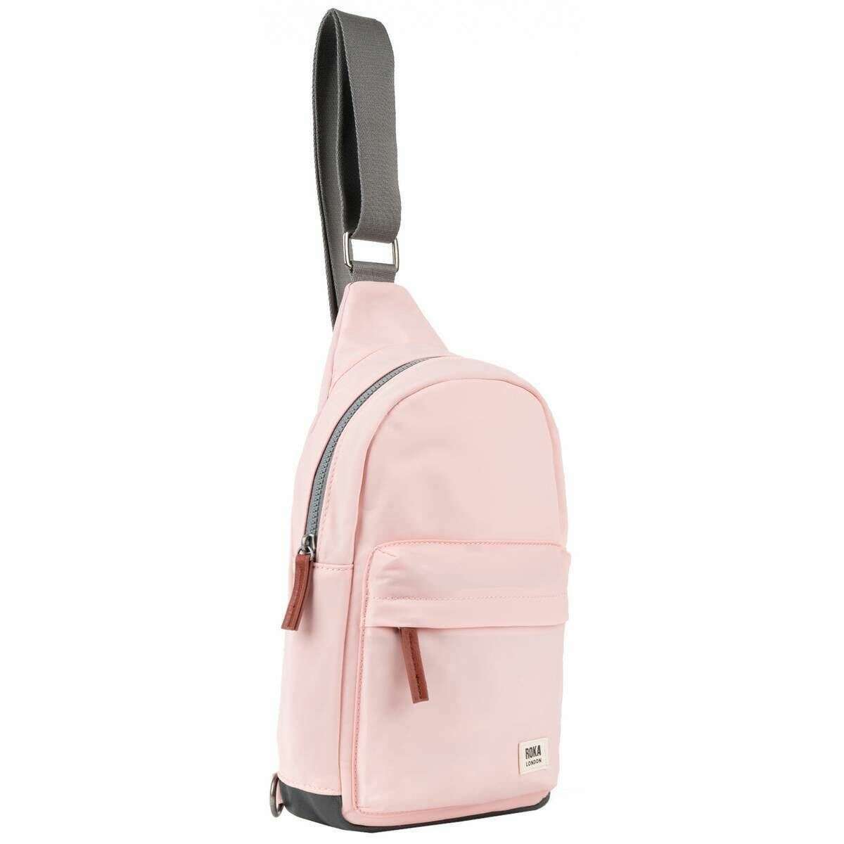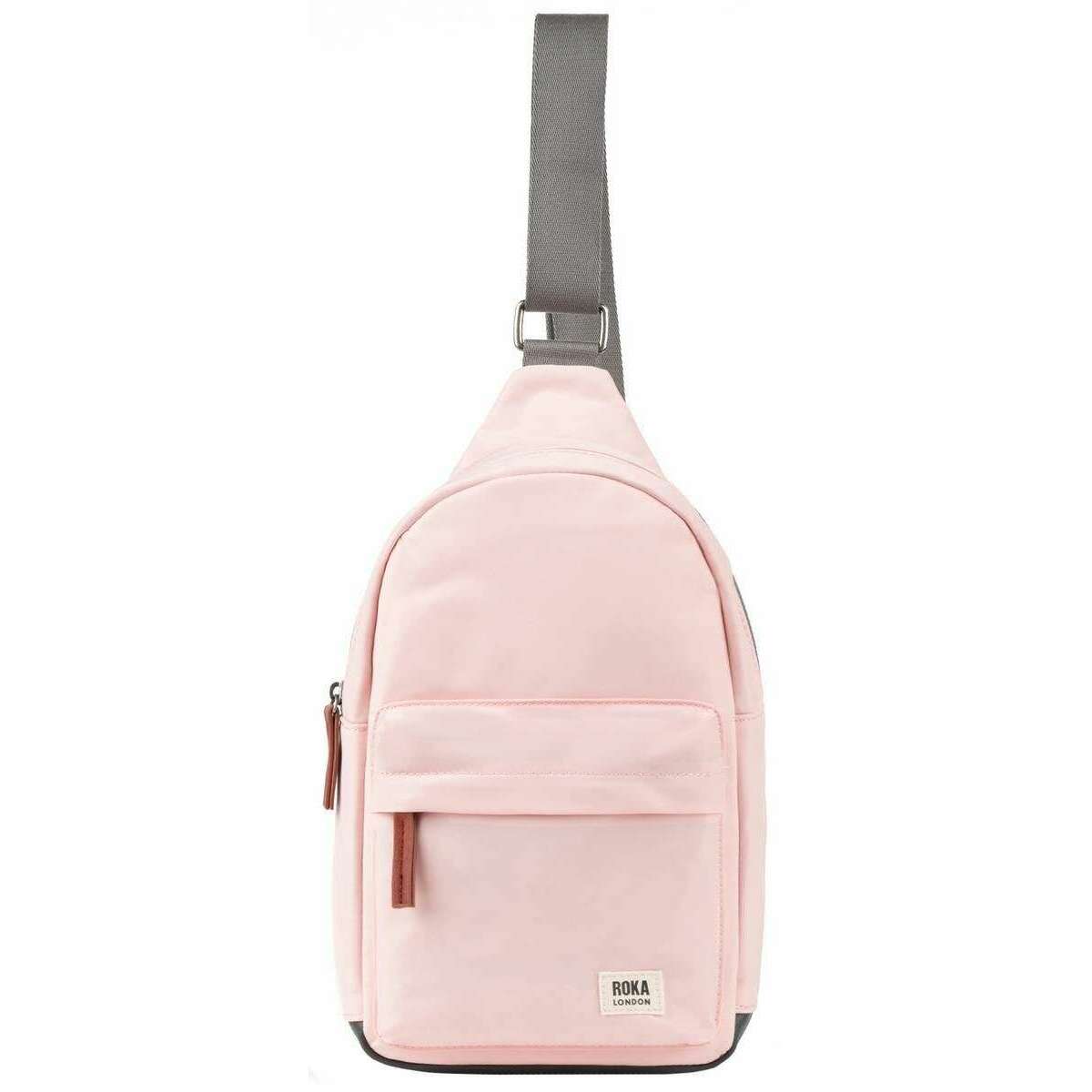 This unisex willesden b large recycled nylon scooter bag by the brand Roka is made from 100% weather-resistant recycled nylon and is showcased in pink. It measures 34cm(height) x 19cm(width) x 7cm(depth). It is recommended to clean with a wet sponge or damp cloth to keep this bag in good condition. All the bags come complete with roka packaging. The Roka Willesden B Large Recycled Nylon Scooter Bag - English Rose Pink is the perfect cross body bag, well suited for a busy person on the go. Commuting, studying, gym or a well needed trip, this bag features an organisational panel on the inside and a front zip pocket on the outside, perfect for keeping organised on the move. This durable scooter bag also features a secret pocket on the back, which secures your valuables allowing you to be worry free and hands free on the go. Straps become softer and more comfortable with each use and can be clipped to the left or right. Crafted from recycled material it is environmentally friendly, water-resistant, durable and completely vegan.